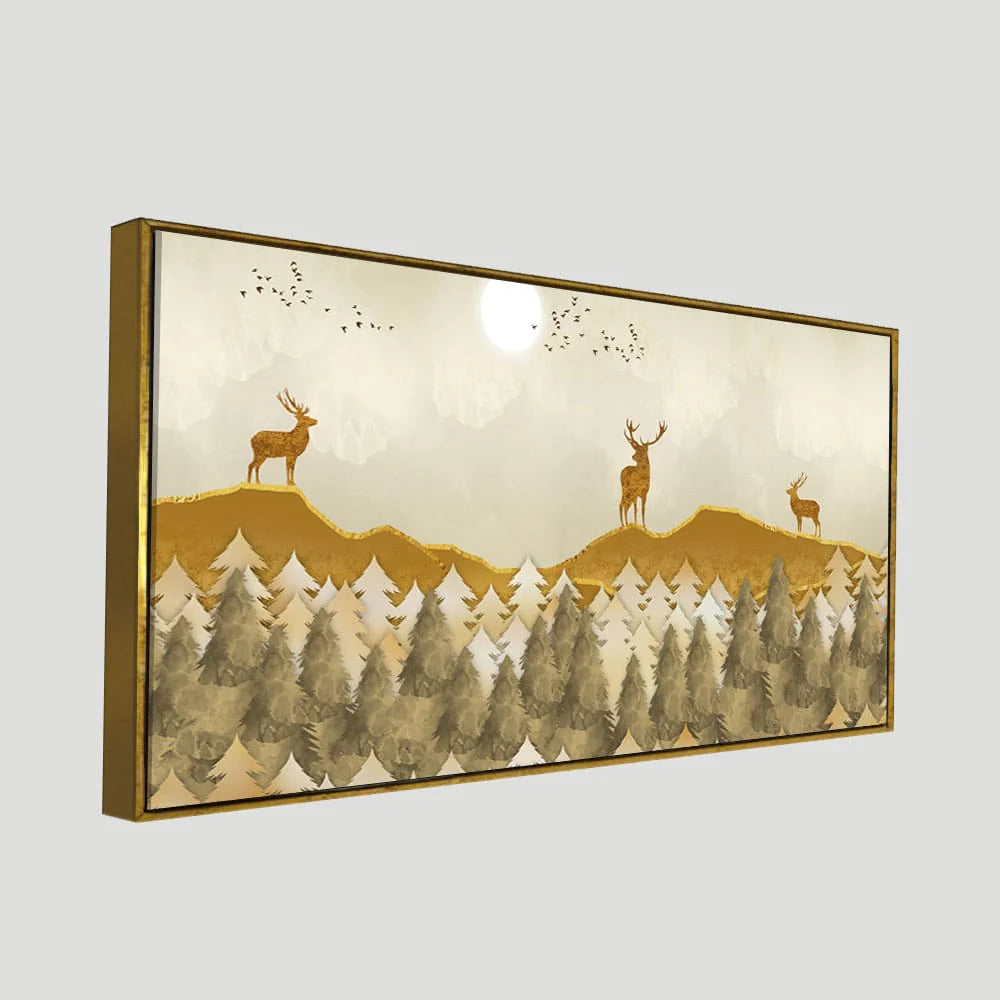 Beautiful Golden Deers Premium Canvas Wall Painting