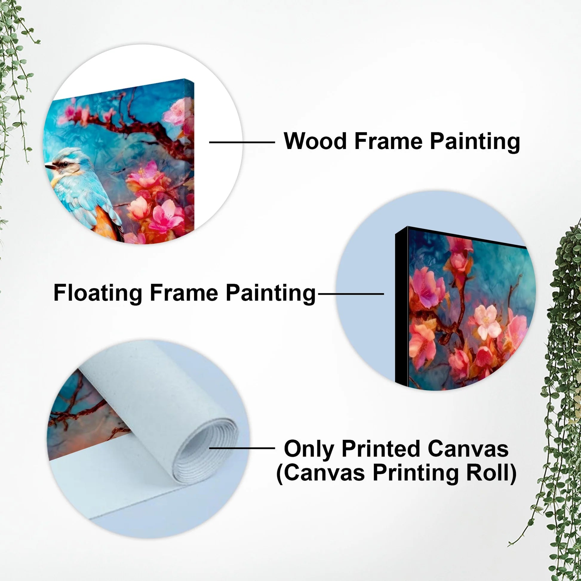 Beautiful Love Birds on a Branch with Pink Flowers Canvas Wall Painting