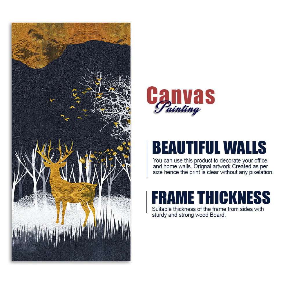 Dark Night Golden Deer with Birds Premium Canvas Wall Painting