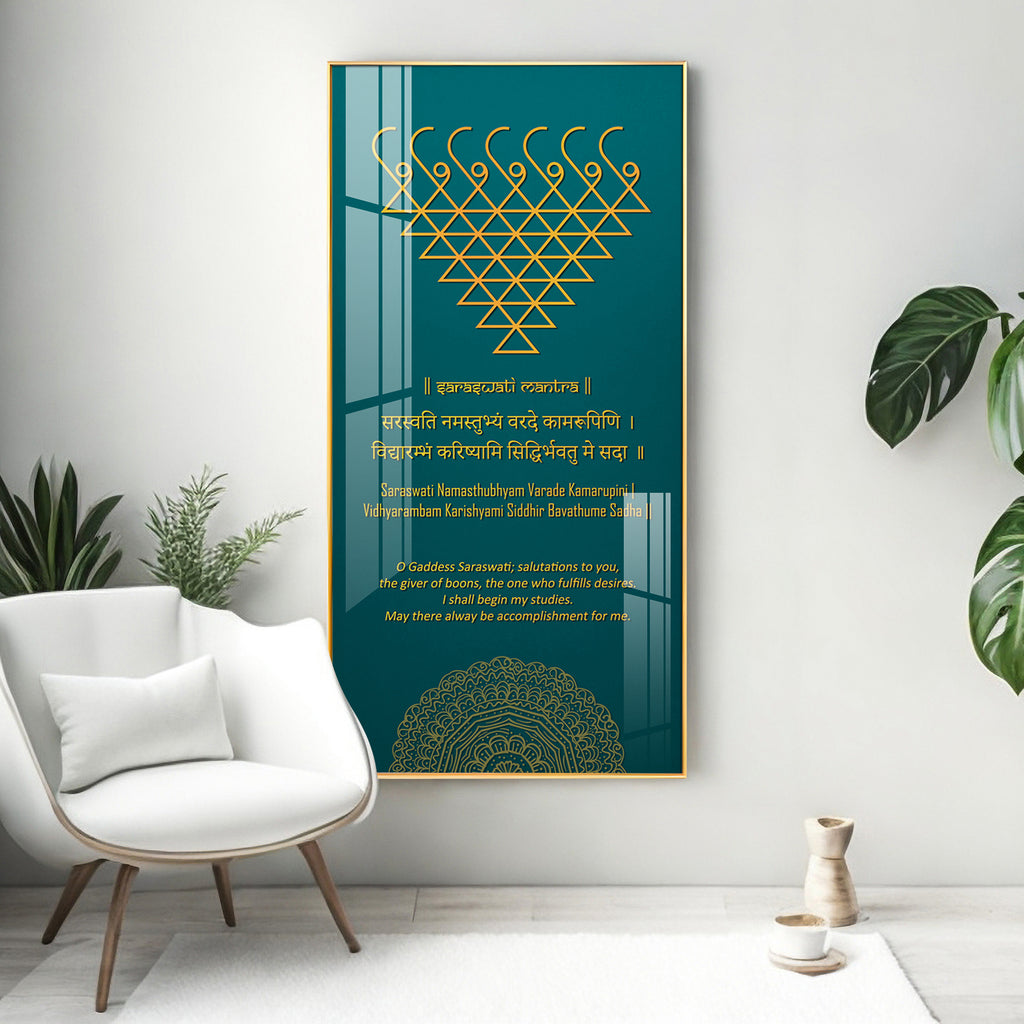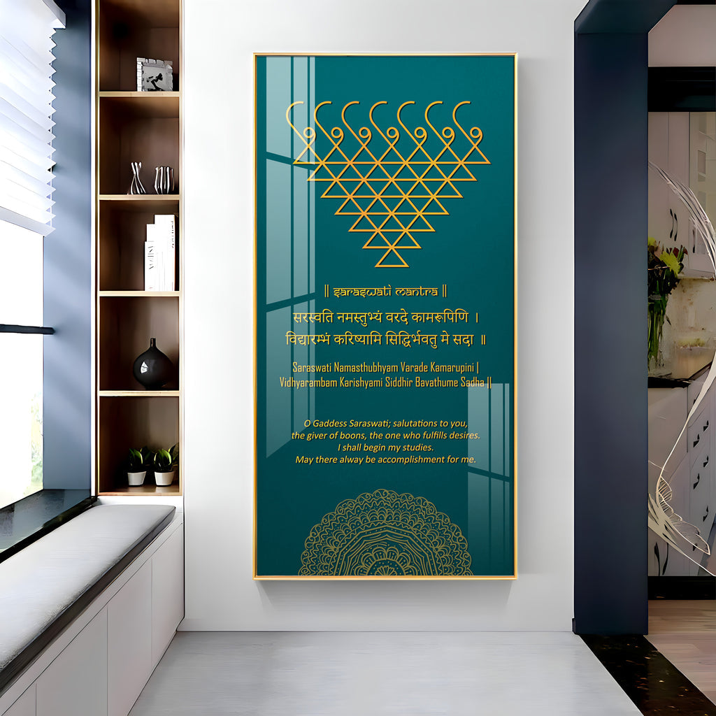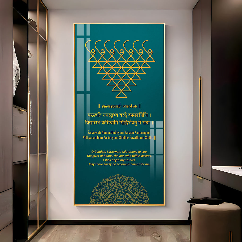 The **Elegant Premium Acrylic Wall Art Featuring Saraswati Stotram** is a sophisticated and spiritually enriching piece that celebrates the sacred Saraswati Stotram. Featuring intricately designed text and imagery dedicated to Saraswati, the goddess of wisdom and arts, this artwork captures divine grace and reverence.