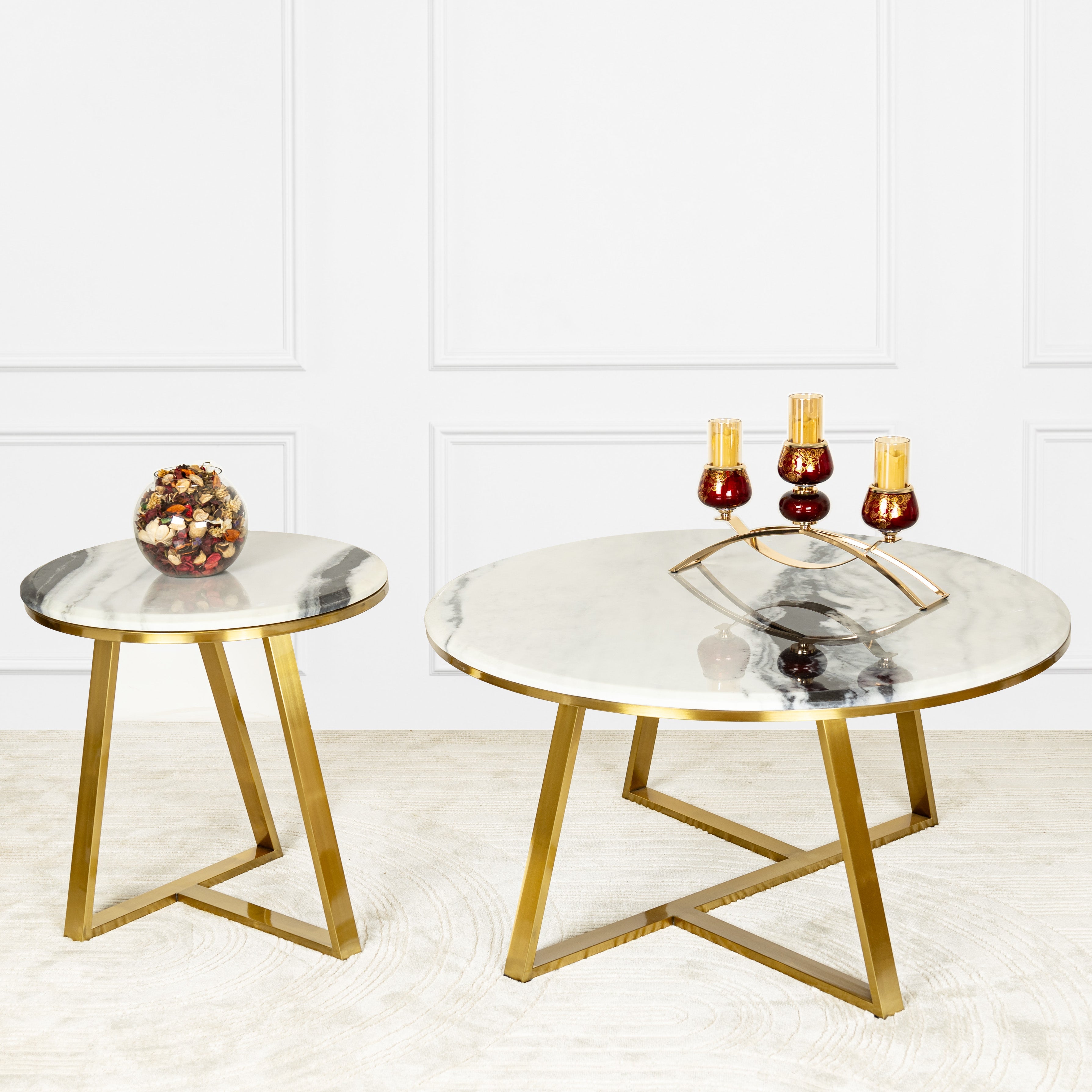 Four-Leg Coffee Table with Gold Detailing & Three-Legged Gold Accent Table