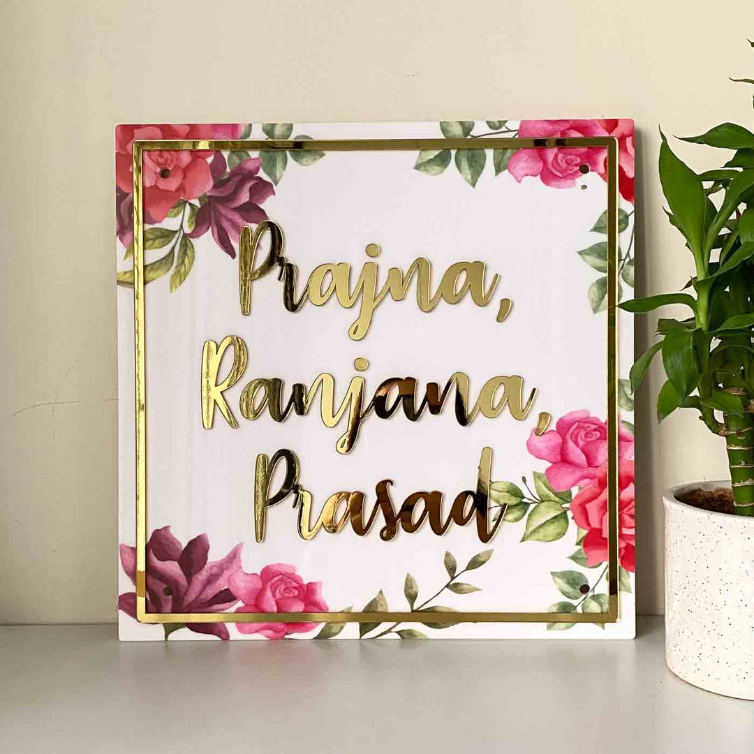 Decrease quantity for Personalised Pink Floral Square Acrylic Nameplate