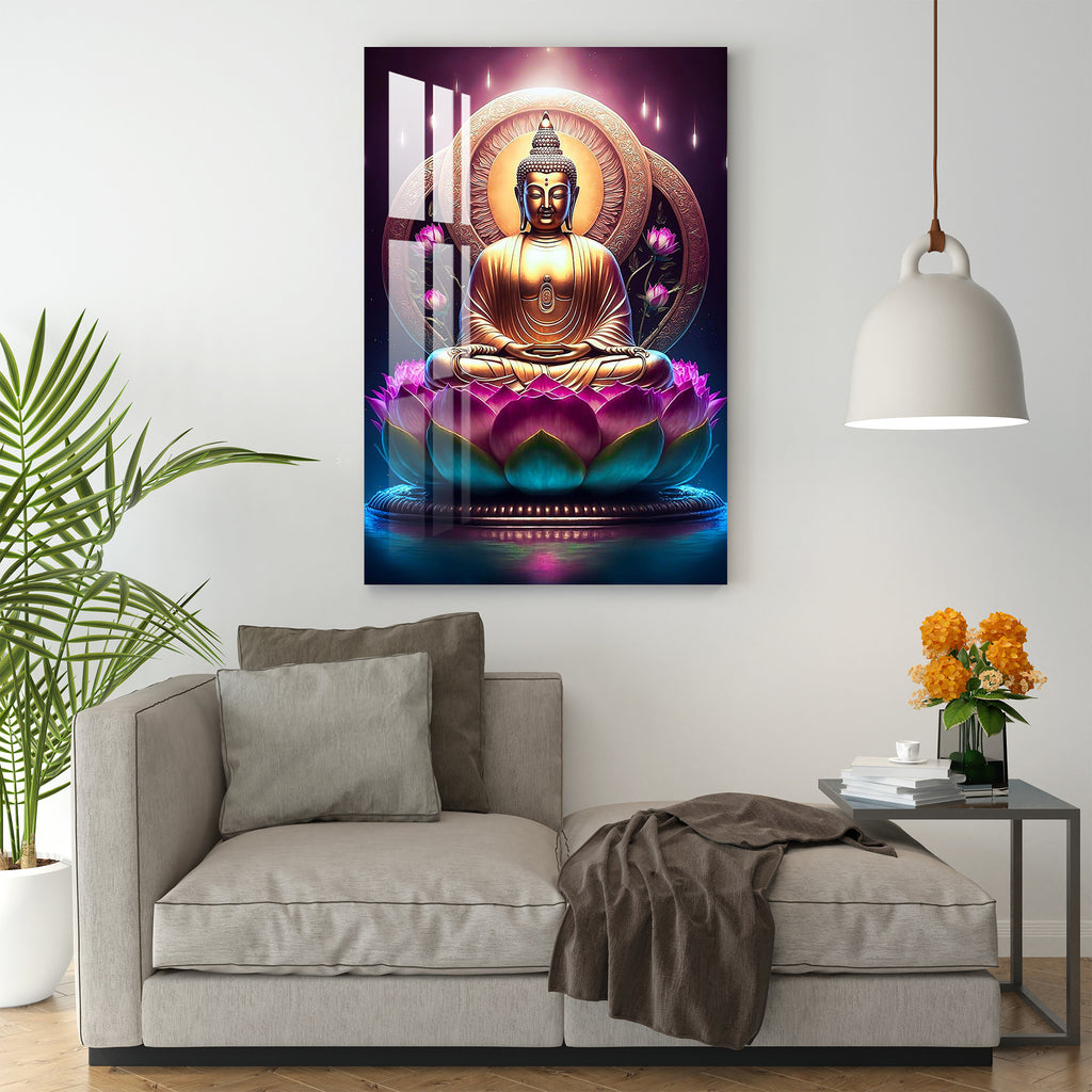 Lord Buddha With Lotus Acrylic Wall Art