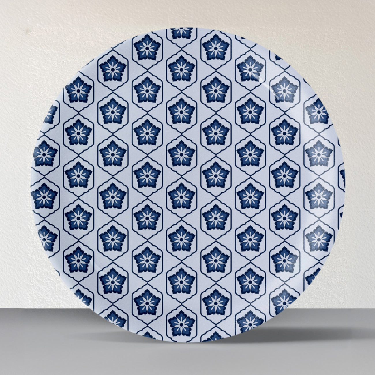 Abstract Geometry in Everyday Art Blue Pottery Inspired jaali symmetry floral plate
