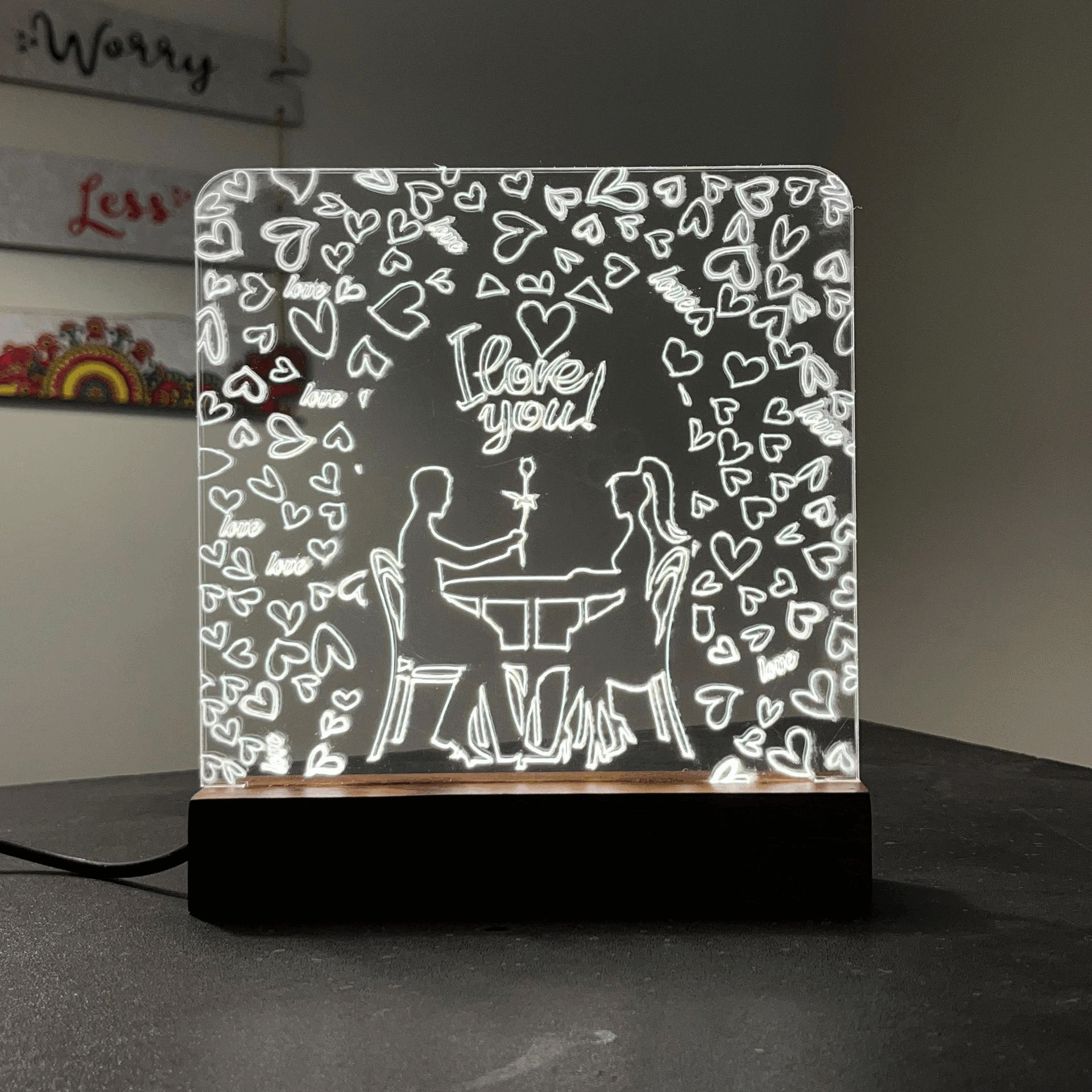 Add a romantic touch to your home or bedroom with this 3D Love Couple Acrylic Night Lamp....