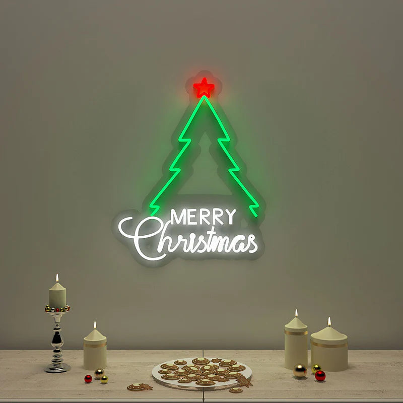 Merry Christmas Text with Tree Neon LED Light