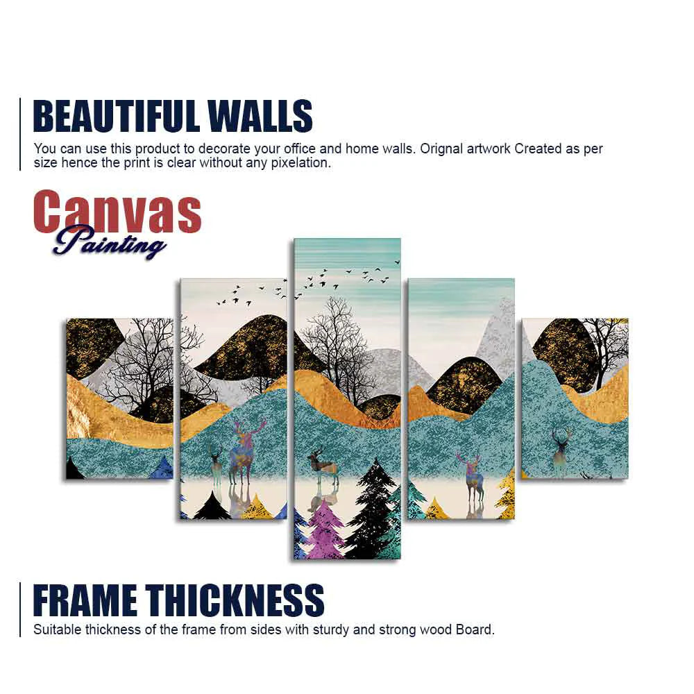 Modern Art Forest Premium Wall Painting Five Pieces Set