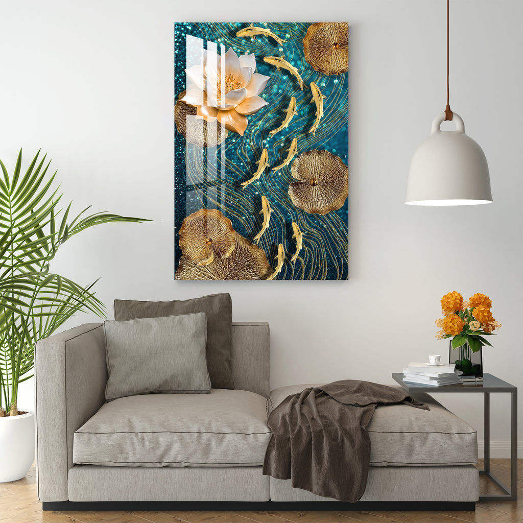 Modern Lotus With Koi Fish Acrylic Wall Art