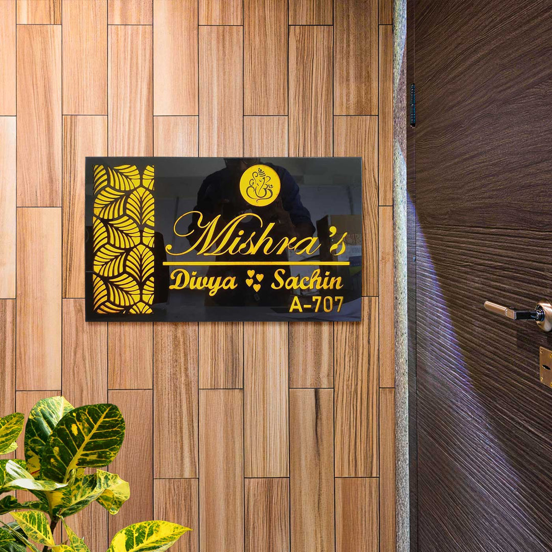 Glow up your space with the Personalized Handmade Leaf Printed Circular Acrylic Name Plate!