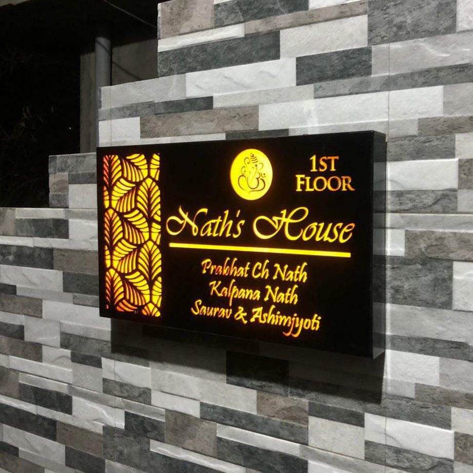 Featuring a stylish leaf print and subtle neon LED backlighting, this acrylic name plate brings nature-inspired design to life.