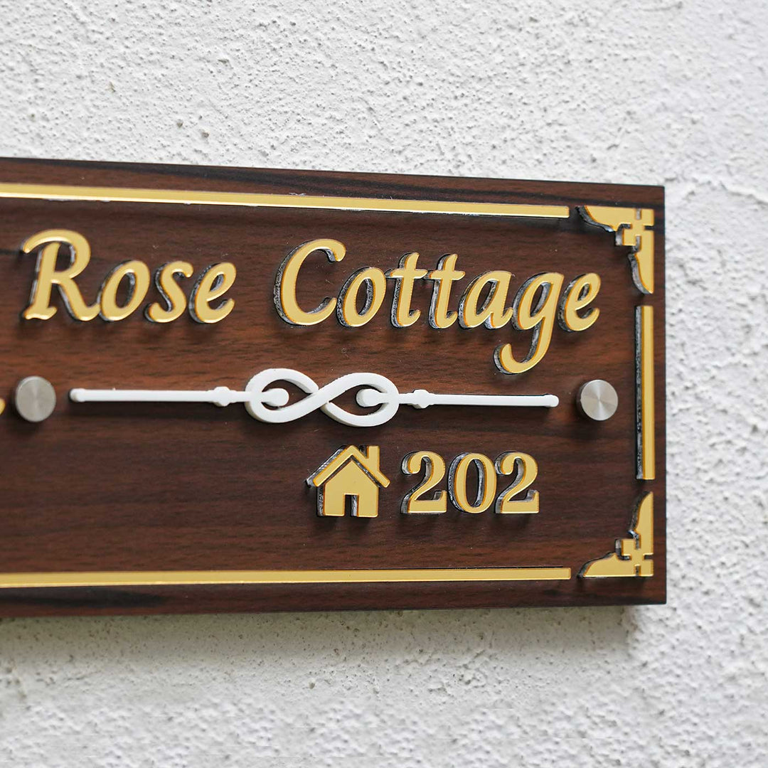 Personalized Brown & Gold Ganesh Themed Acrylic Name Plate