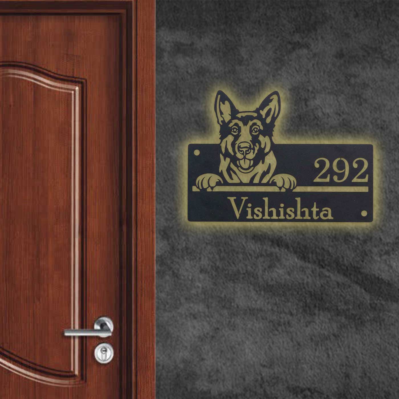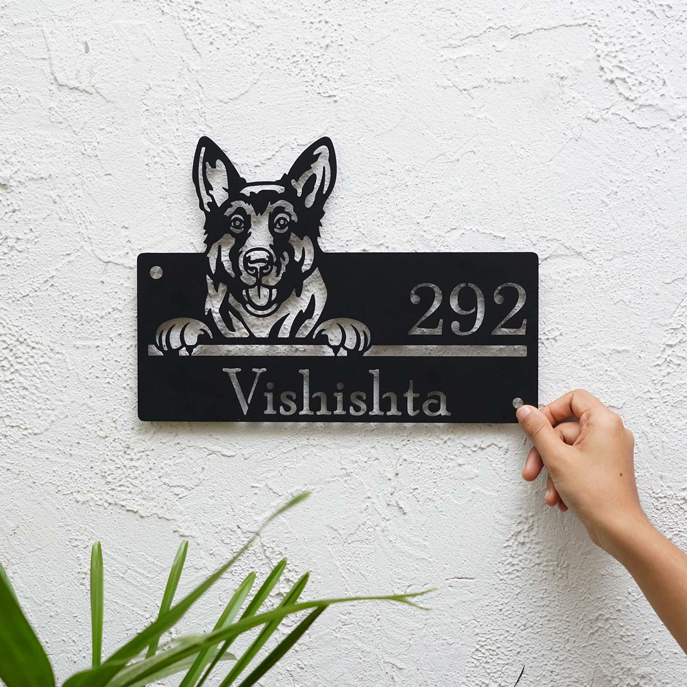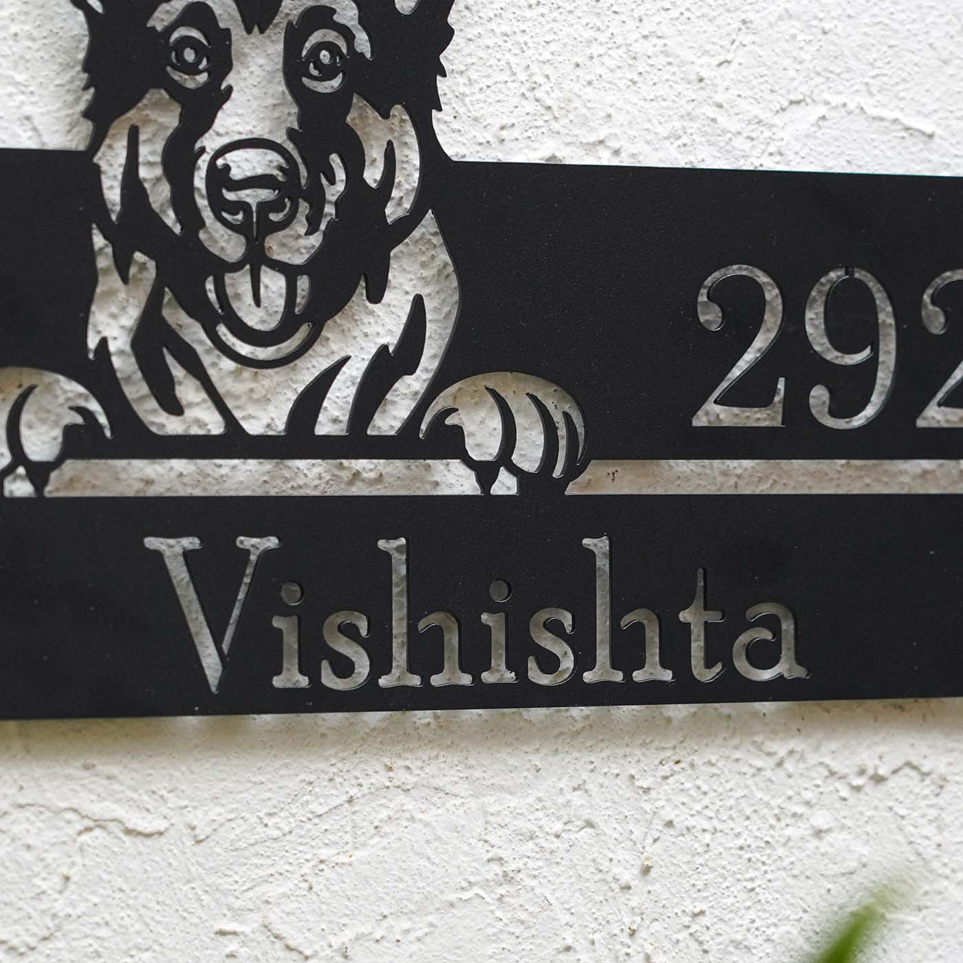 Crafted from 16 gauge mild steel, this metal name plate is powder coated to protect against rust and weather damage, making it a reliable metal name plate for home entrance outdoor areas. The artistic dog design adds personality while the personalized name ensures a unique identity for your home.