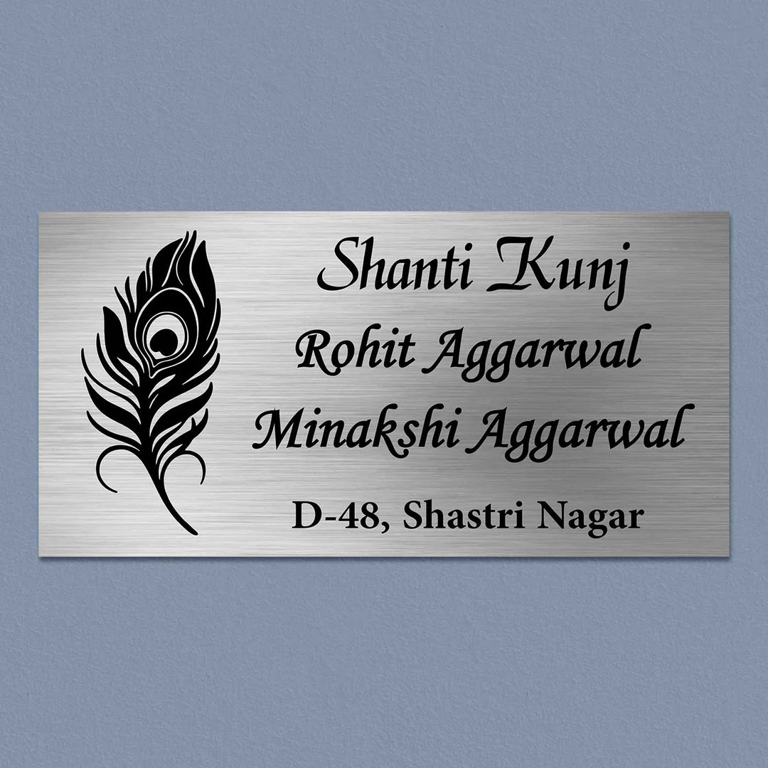 Add a touch of elegance and modern charm to your entrance with this Personalized Feather Theme Stainless Steel Metal Name Plate for Home. Designed with a sleek feather pattern, this name plate instantly enhances the visual appeal of homes, apartments, villas, offices, and commercial spaces.