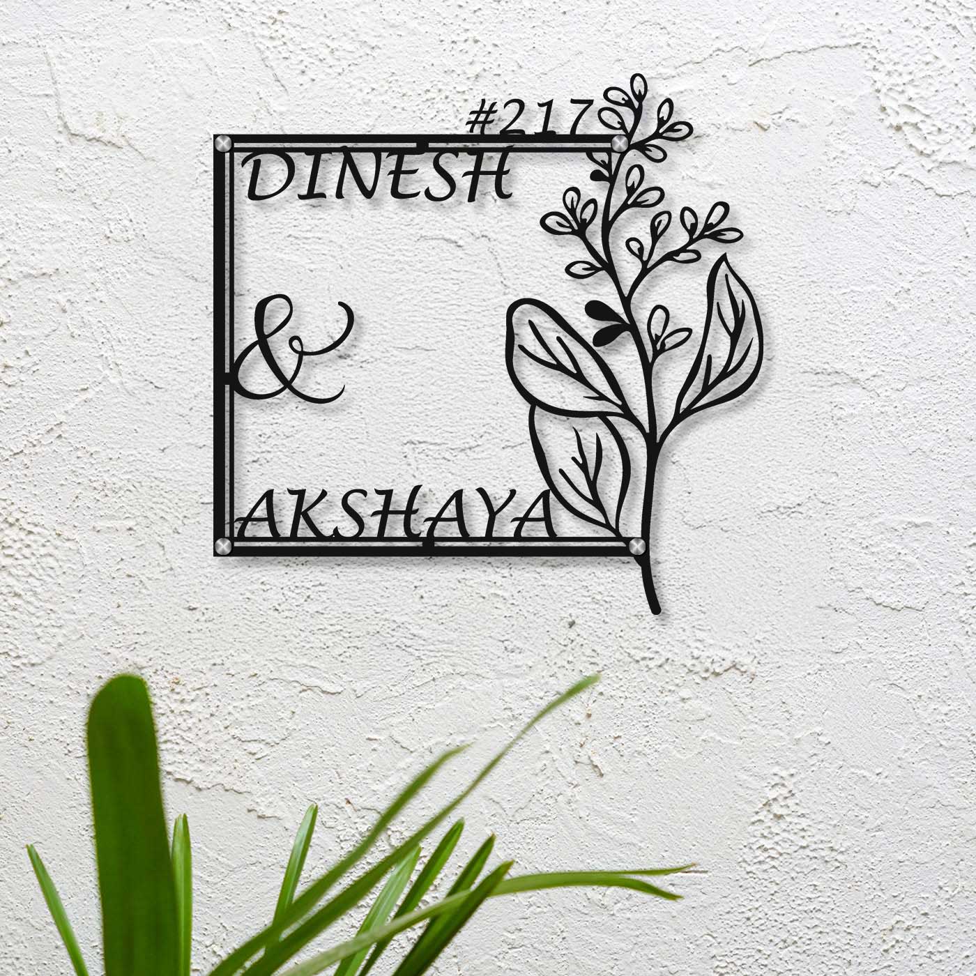 Upgrade your home entrance with this Personalized Floral Metal Name Plate for Home, beautifully designed using precision laser-cut technology. Crafted from 16-gauge mild steel, this metal name plate offers excellent durability and a premium powder-coated finish that protects it from rust and weather damage.