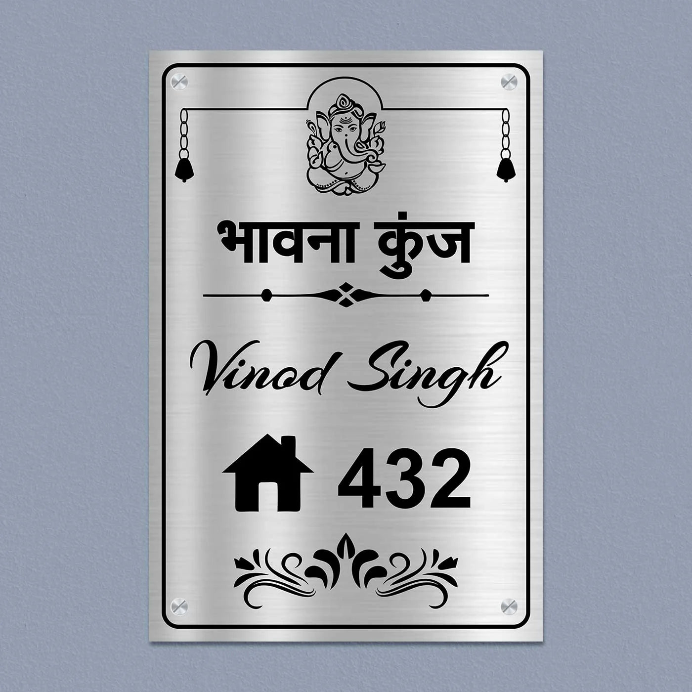 Enhance your entrance with this Personalized Stylish Ganesha Metal Name Plate for Home, crafted from premium stainless steel for long-lasting durability. Designed with an elegant Ganesha motif, this name plate blends spirituality, style, and modern design—making it a perfect choice for home entrance outdoor décor.