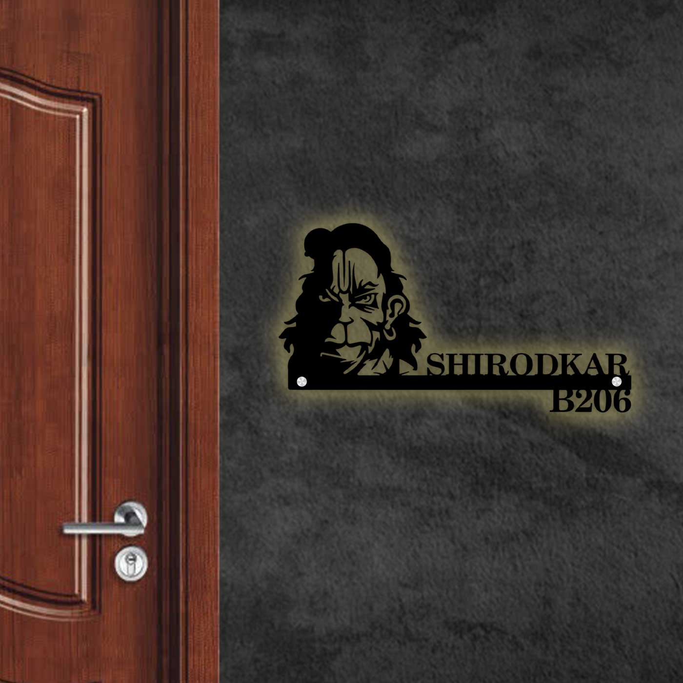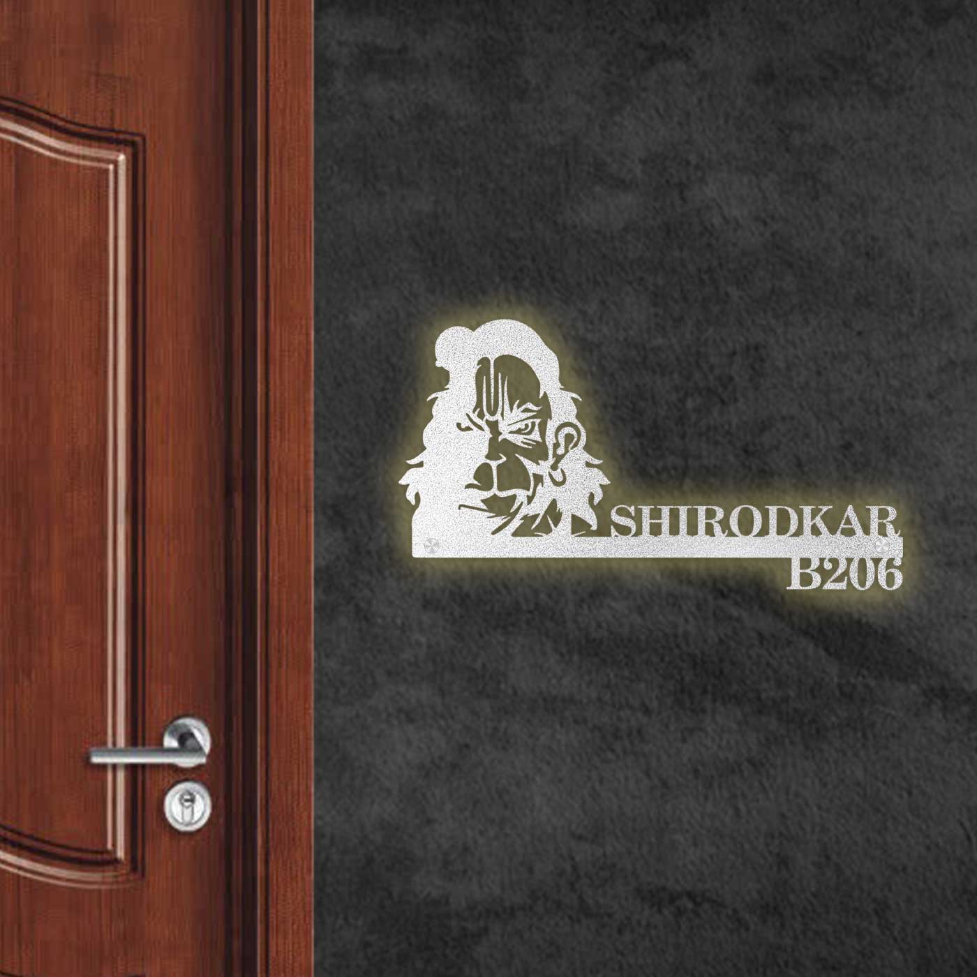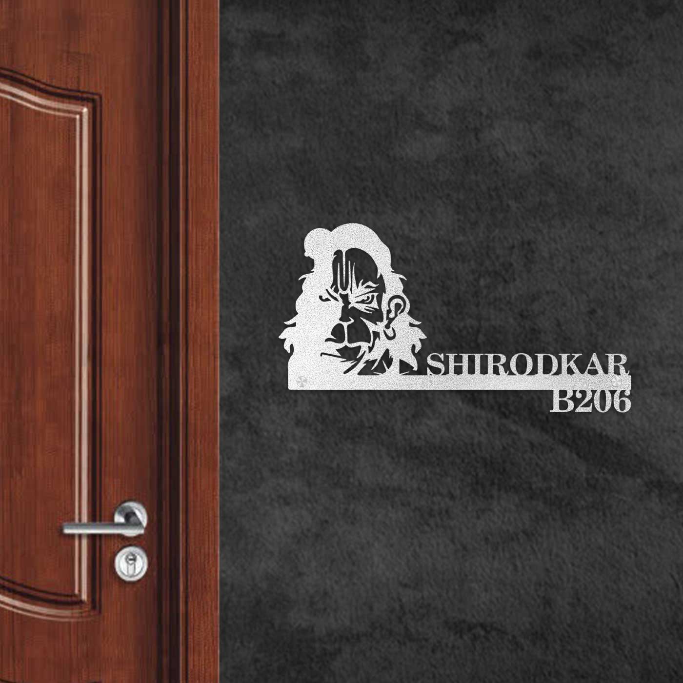 Make a powerful impression at your entrance with this Personalized Furious Hanuman Metal Name Plate for Home. Featuring a precision laser-cut Hanuman design, this metal name plate symbolizes strength, protection, and devotion while enhancing the aesthetics of your space.