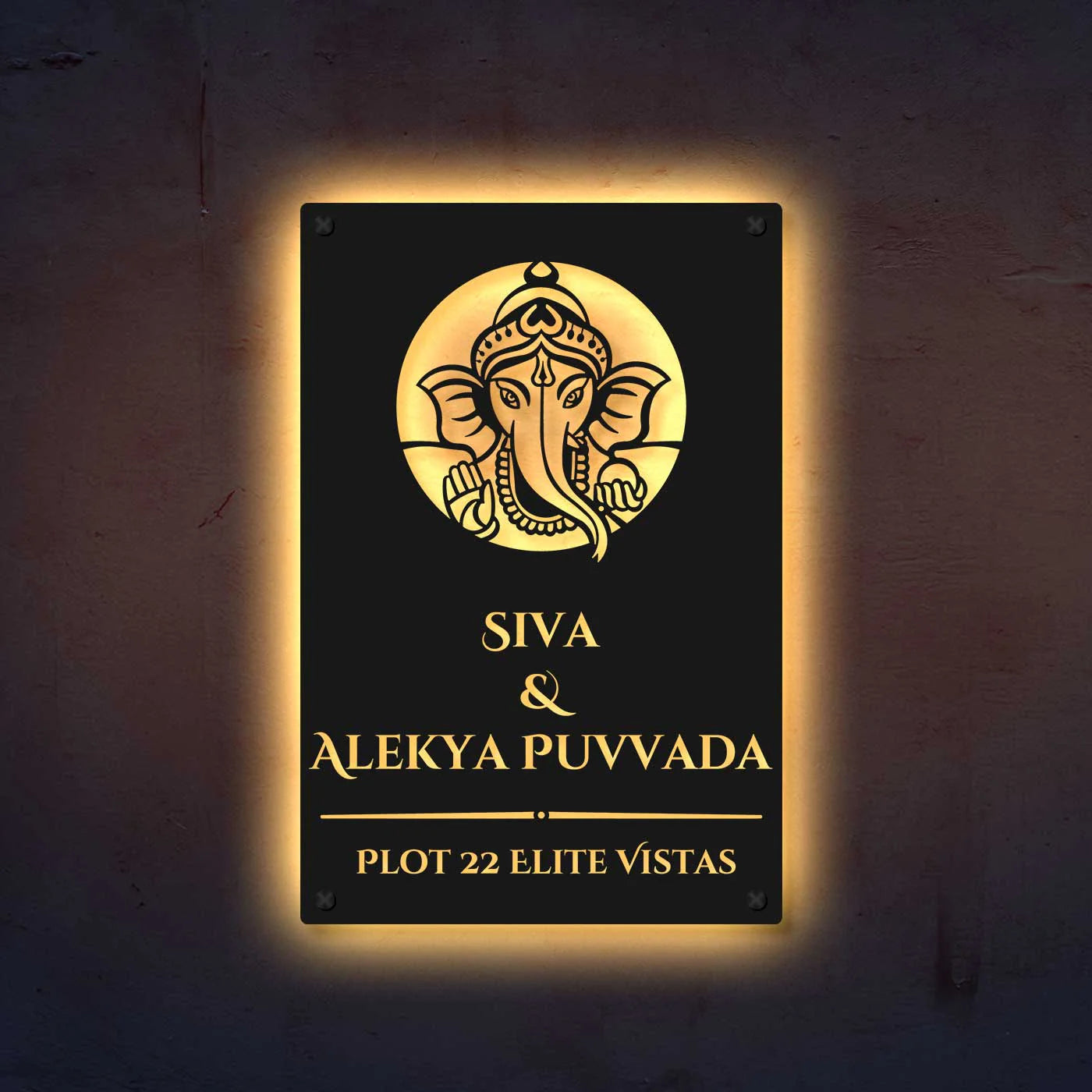The Ganesha theme adds a divine touch, symbolizing prosperity and positivity for every home. Whether you stay in Bangalore, Mumbai, Delhi, or anywhere else in India, this stylish and devotional name plate effortlessly blends with modern and traditional home architecture.