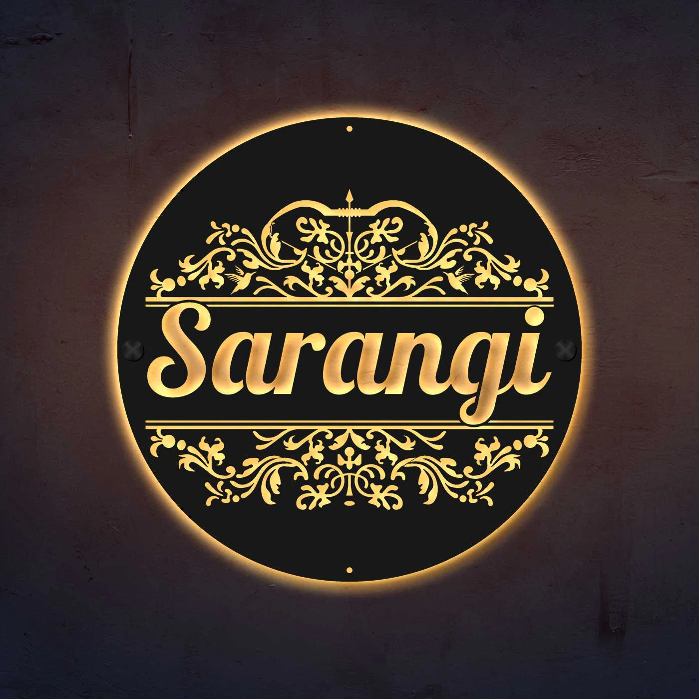The round laser-cut design gives your home a bold yet sophisticated look, making it a popular metal name plate design for home. Finished with high-quality powder coating, this name plate is resistant to rust, moisture, and harsh weather conditions, making it suitable for both indoor and outdoor placement.