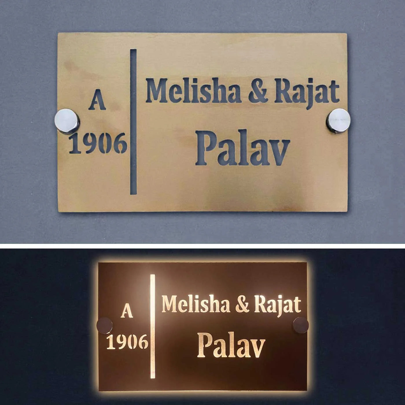 Upgrade your entrance with this Personalized Waterproof LED Metal Name Plate for Home, crafted in premium Soft Gold 304-grade stainless steel. Designed for long-lasting durability, this modern waterproof name plate is perfect for customers searching for a metal name plate for home, metal name plate for home near me, or a stylish metal name plate for home entrance outdoor.