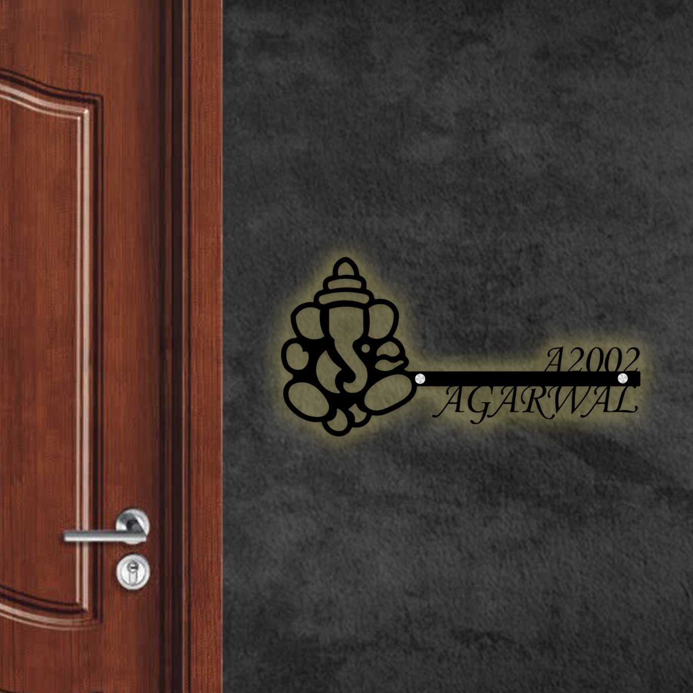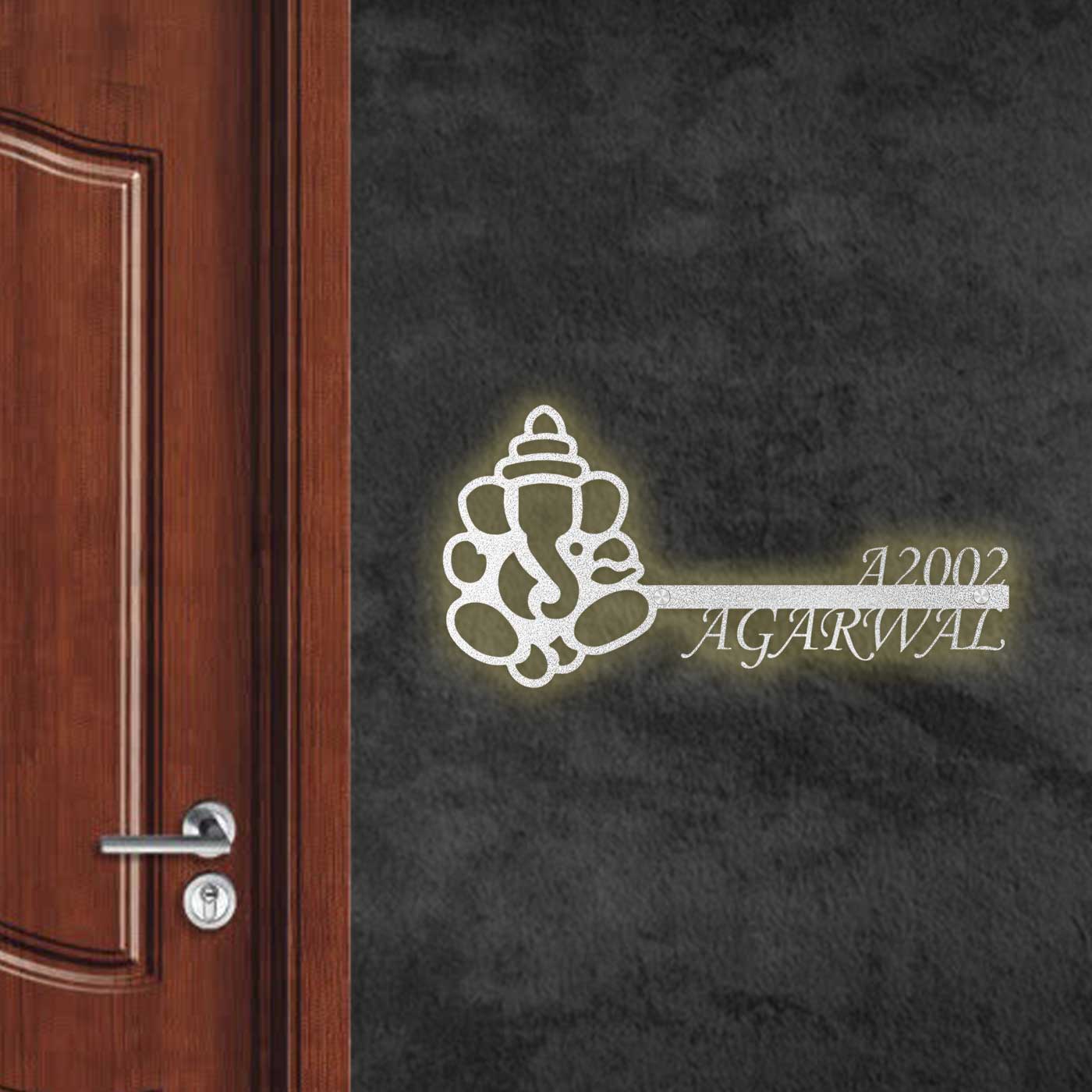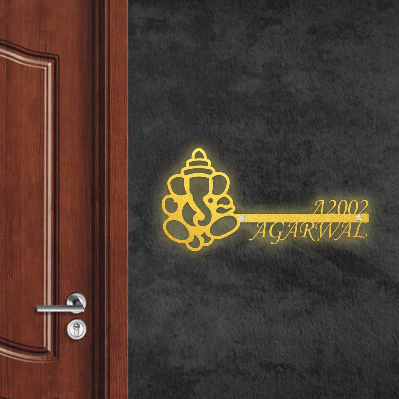 Upgrade your home entrance with this personalized metal name plate for home, designed to combine durability, elegance, and spiritual aesthetics. Crafted using high-quality laser cut metal, this name plate is perfect for homeowners looking for a stylish and long-lasting solution.