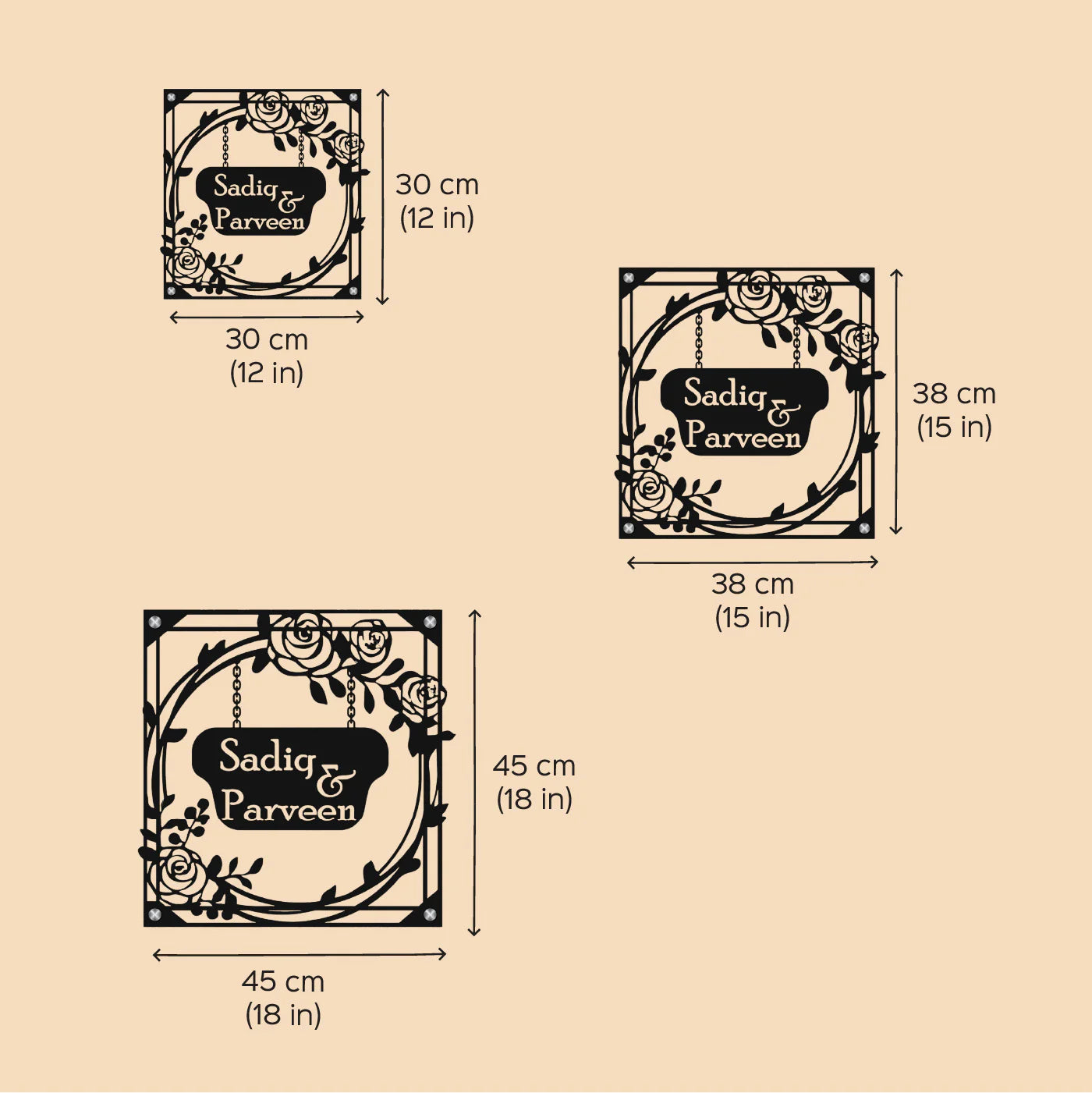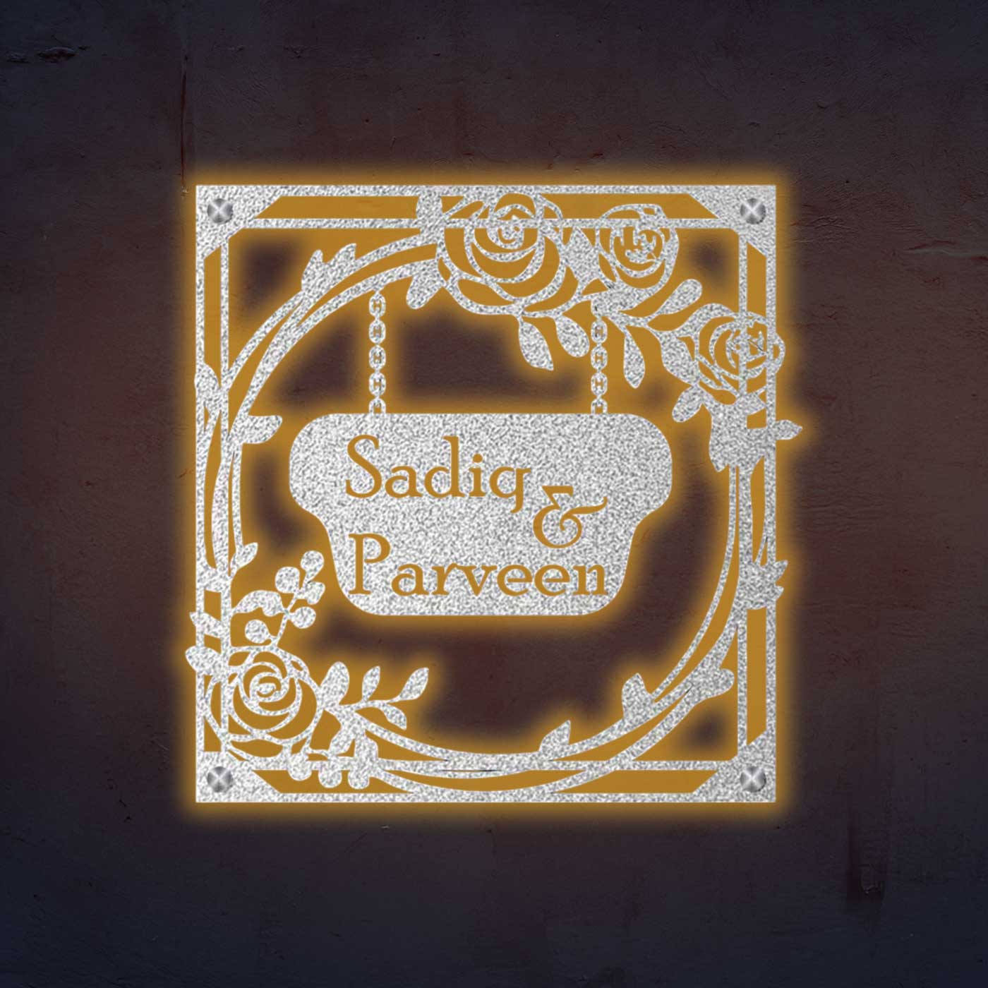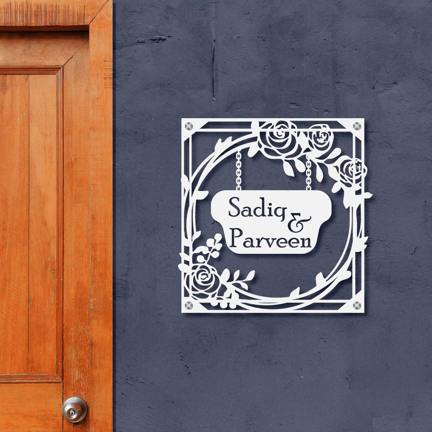 Add charm and elegance to your entrance with this personalized metal name plate for home featuring a beautiful rose theme laser cut design. Crafted to enhance modern and traditional homes alike, this name plate delivers durability with timeless aesthetics.
