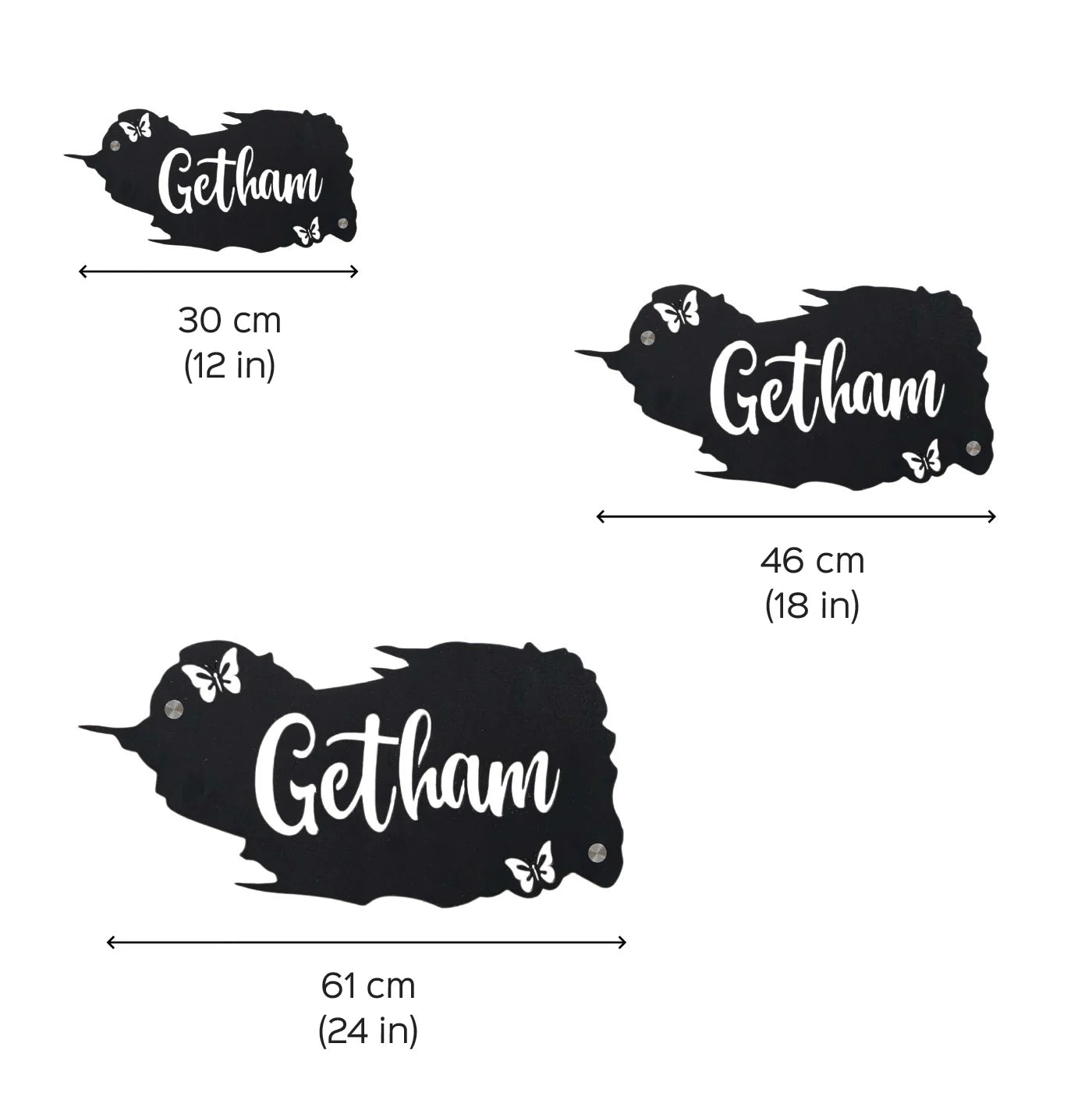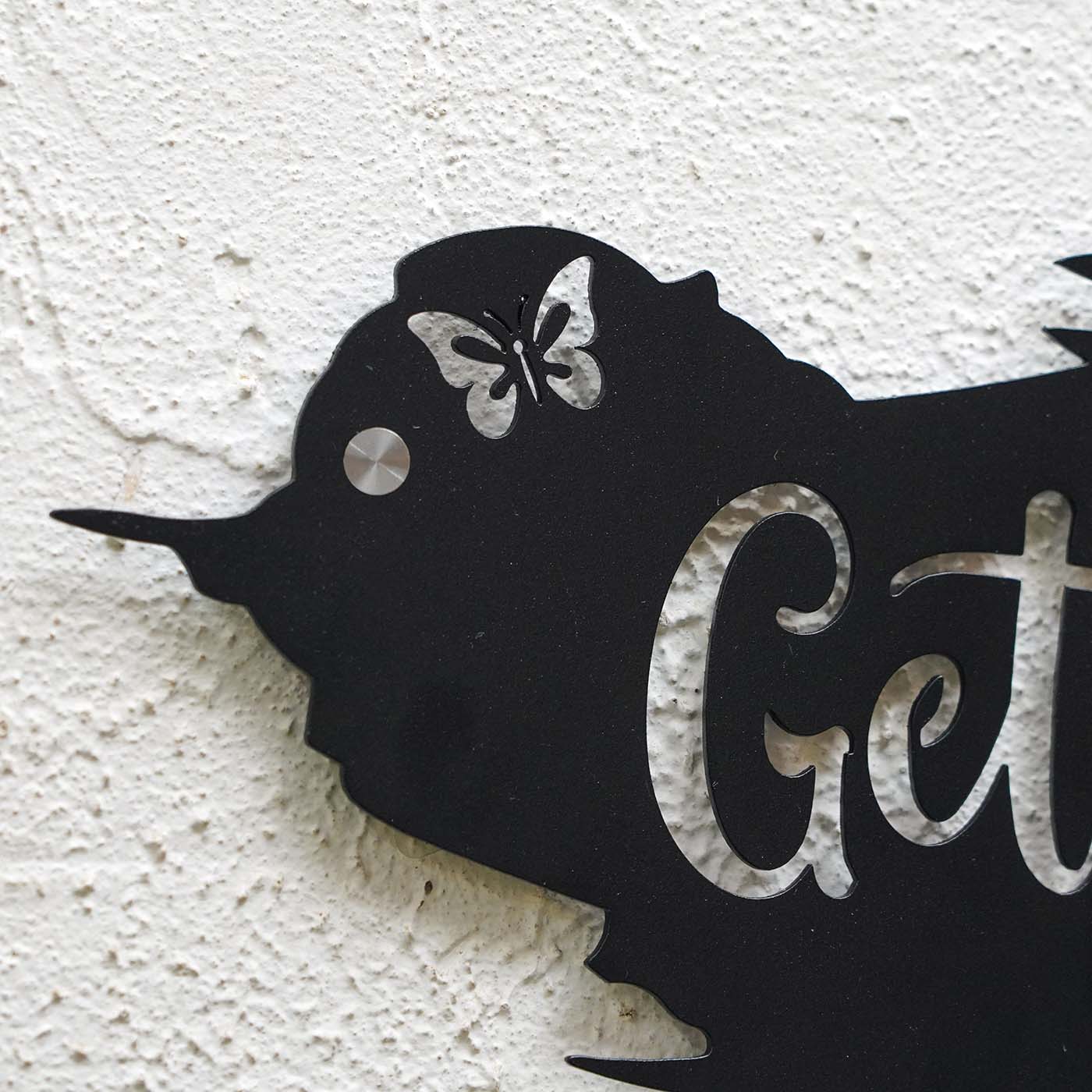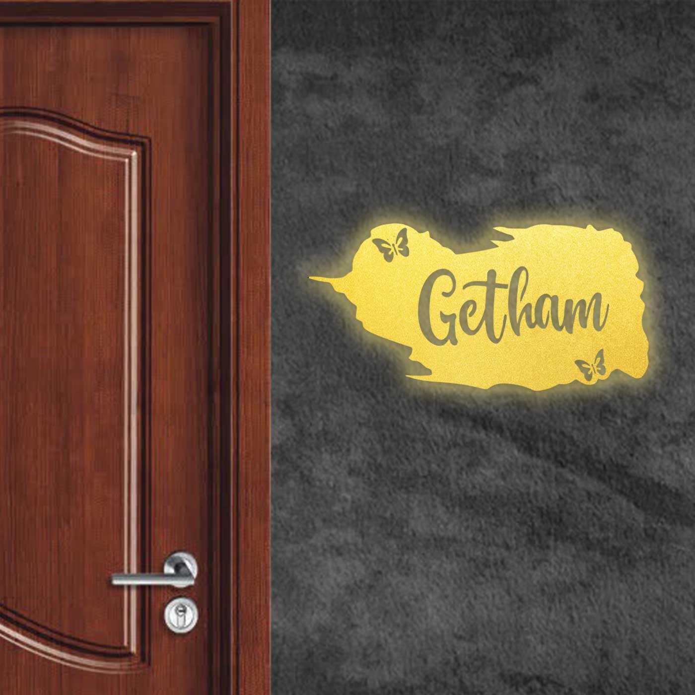 Enhance your home entrance with this personalized metal name plate for home, beautifully designed with a modern butterfly theme that symbolizes elegance and positivity. This name plate is ideal for homeowners looking for a stylish yet durable metal name plate design for home.