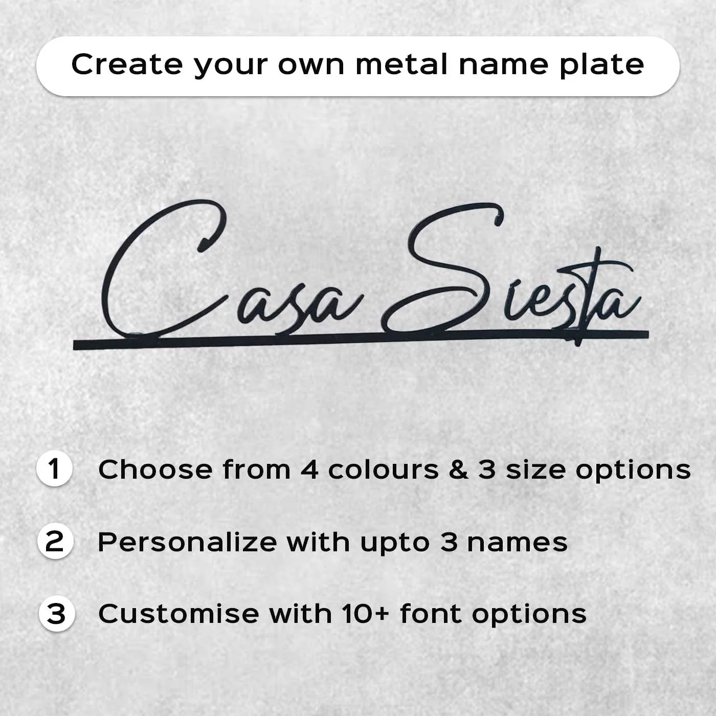 If you are searching for a metal name plate for home, a sleek modern design, or a durable outdoor name plate, this handcrafted piece offers long-lasting performance with a contemporary look. It is personalized with your name using precision laser-cutting technology, ensuring crisp detailing and a premium finish.
