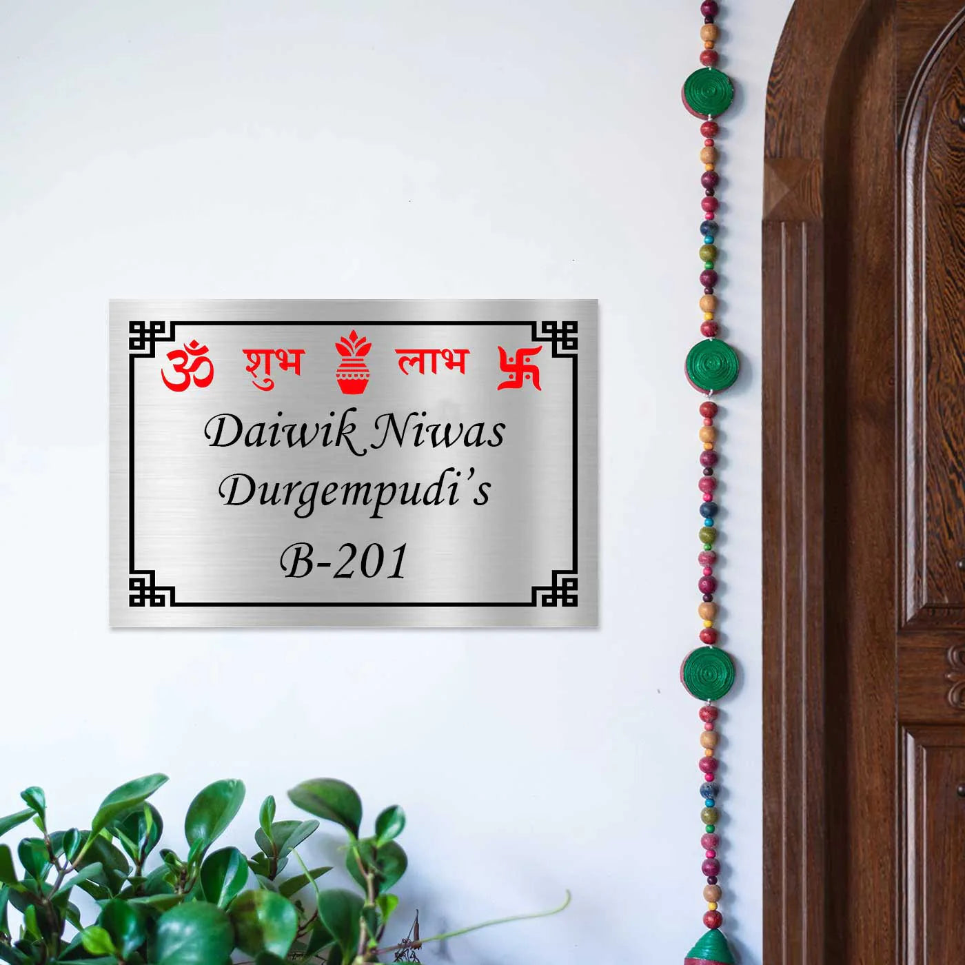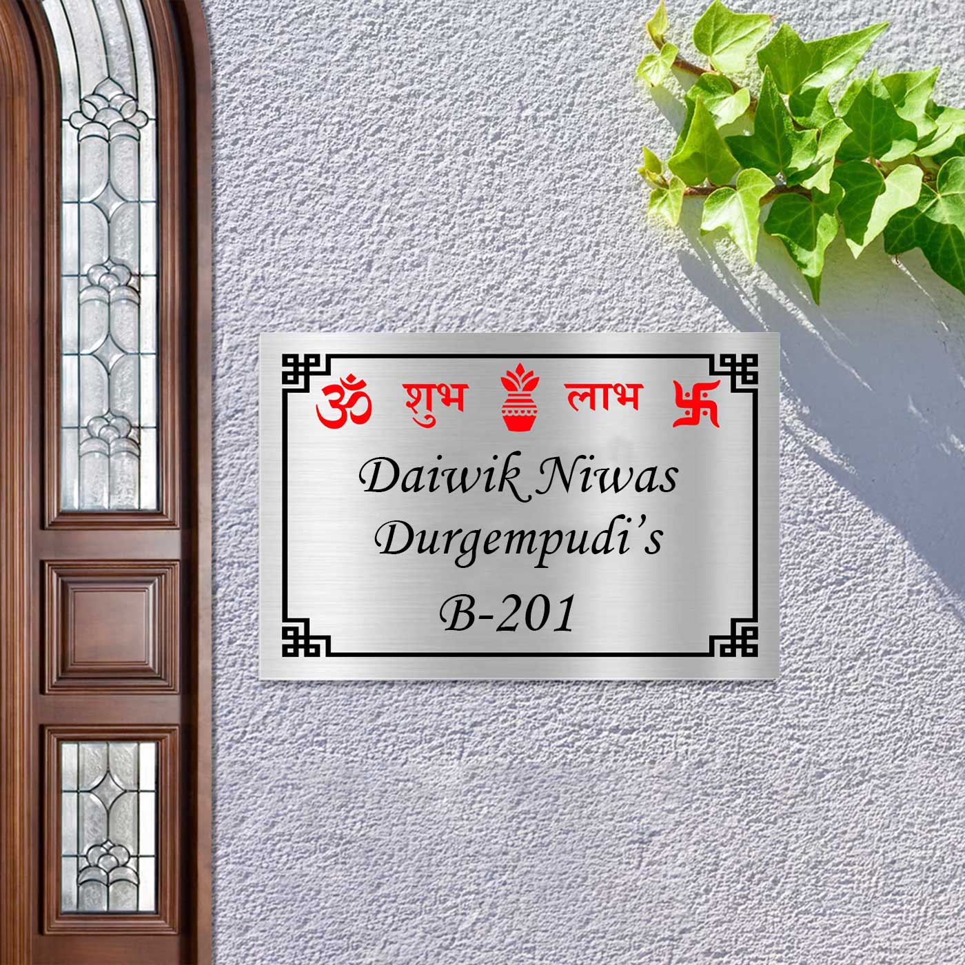 Made from high-grade stainless steel, this rust-proof and weather-resistant metal name plate is suitable for both indoor and outdoor spaces. Whether you’re searching for a metal name plate for home near me, a minimalist metal name plate design, or a durable option for a spiritual entryway, this design is the ideal choice.
