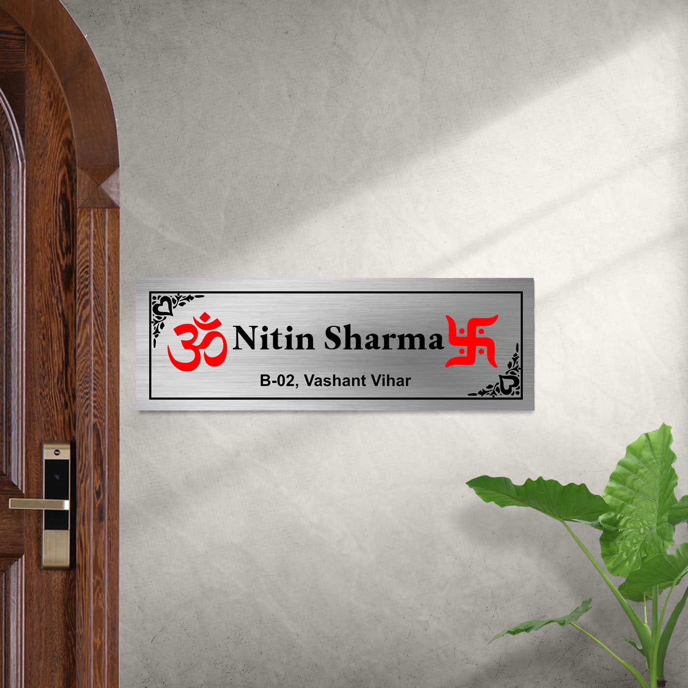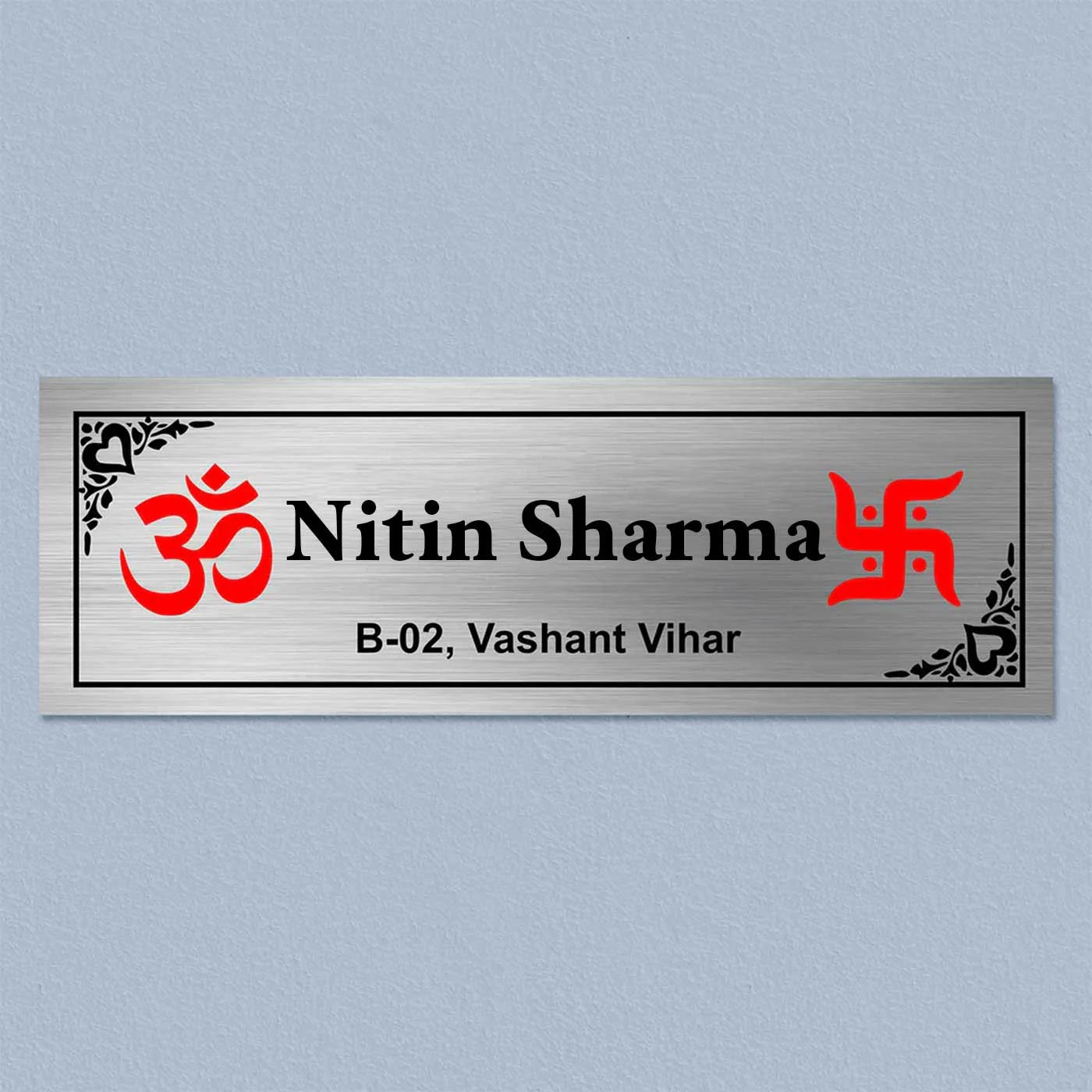 Add divine elegance to your entrance with our Personalized Om & Swastik Stainless Steel Metal Name Plate for Home. Crafted from high-grade stainless steel, this metal name plate for home entrance outdoor is designed to offer durability, rust resistance, and timeless beauty.