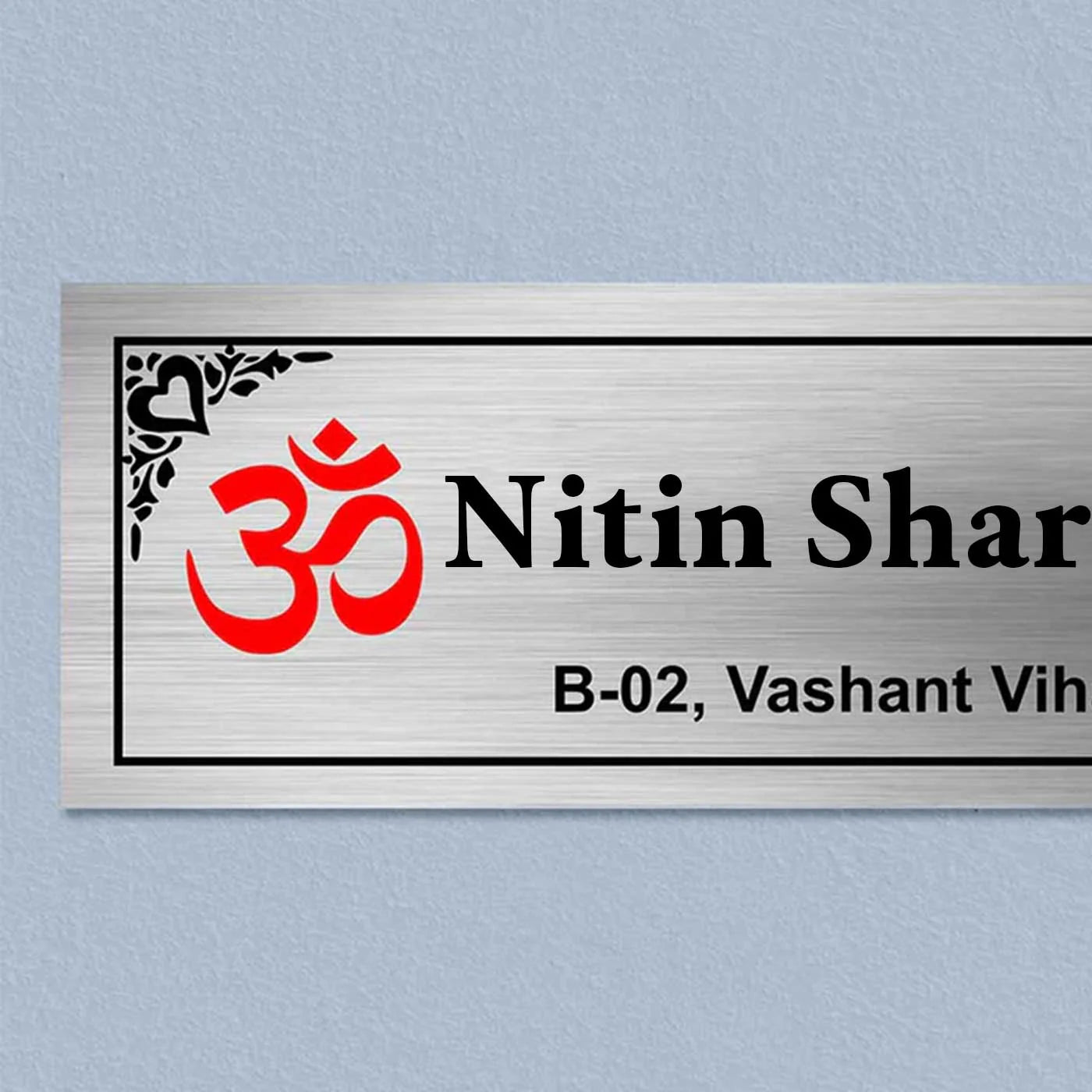 Perfect for homes, apartments, offices, and bungalows, this personalized metal name plate blends spiritual symbolism with modern craftsmanship. The Om & Swastik design brings positivity and traditional charm, while the polished steel finish ensures long-lasting shine in both indoor and outdoor environments.