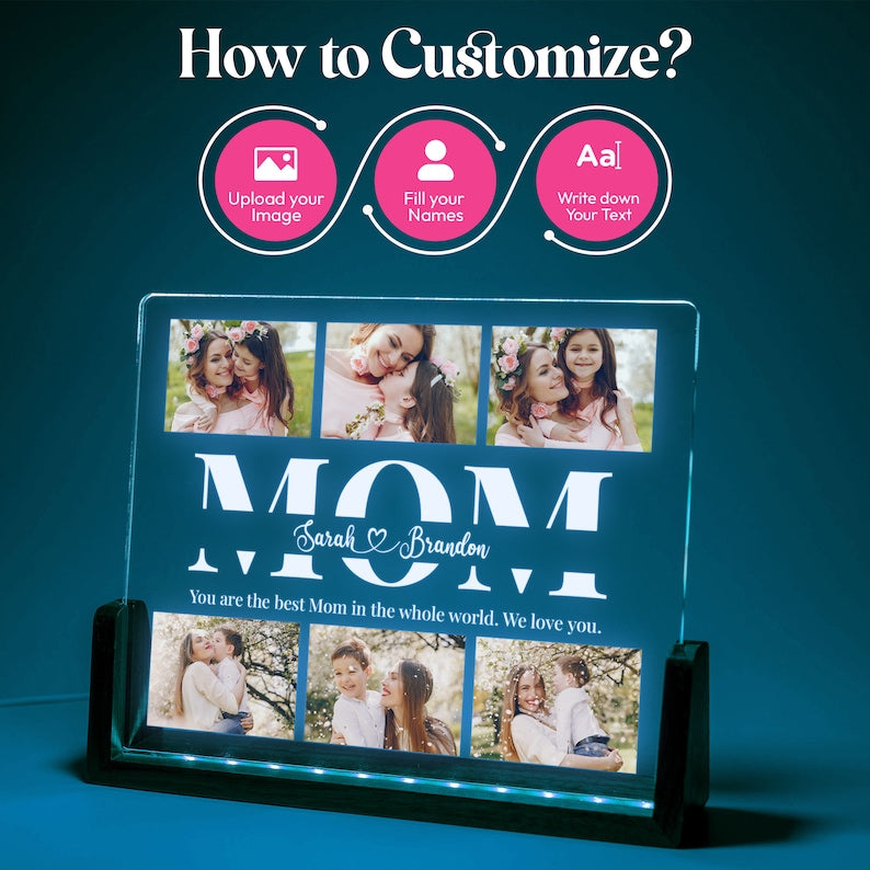 Personalized Photo Night Light Mother's Day Gift for Mom, Acrylic LED Light, Home Decoration