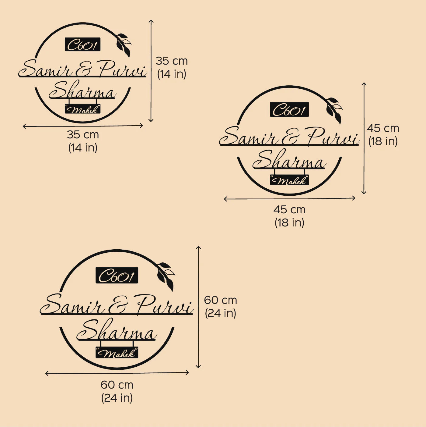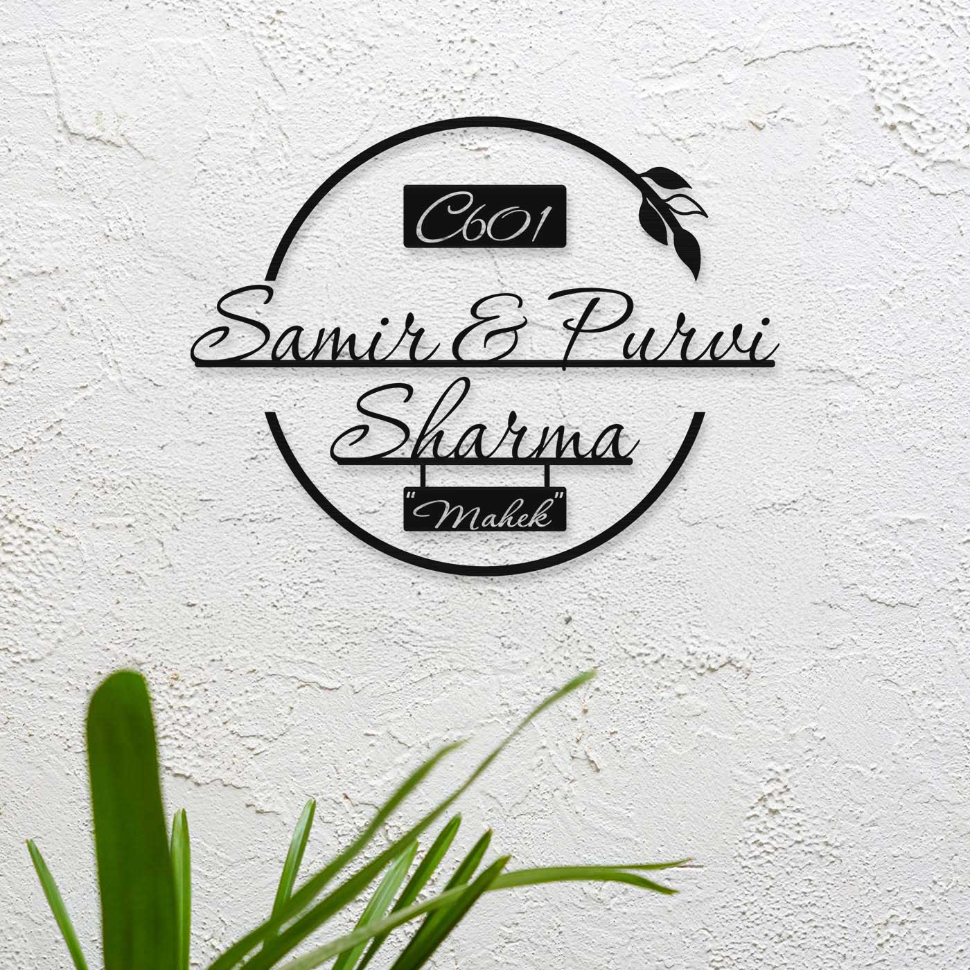 Equipped with 2–4 mounting screws depending on size, installation is quick and secure. It is ideal for houses, apartments, villas, offices, and gifting purposes. This handcrafted metal name plate design for home blends style, personalization, and functionality seamlessly.