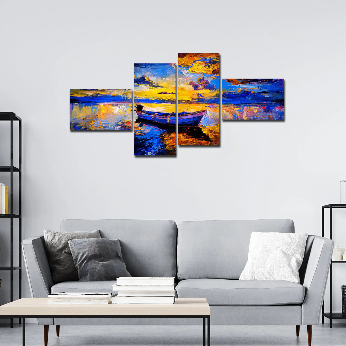 Premium Wall Painting of Sky Sunset and Boat on the Water