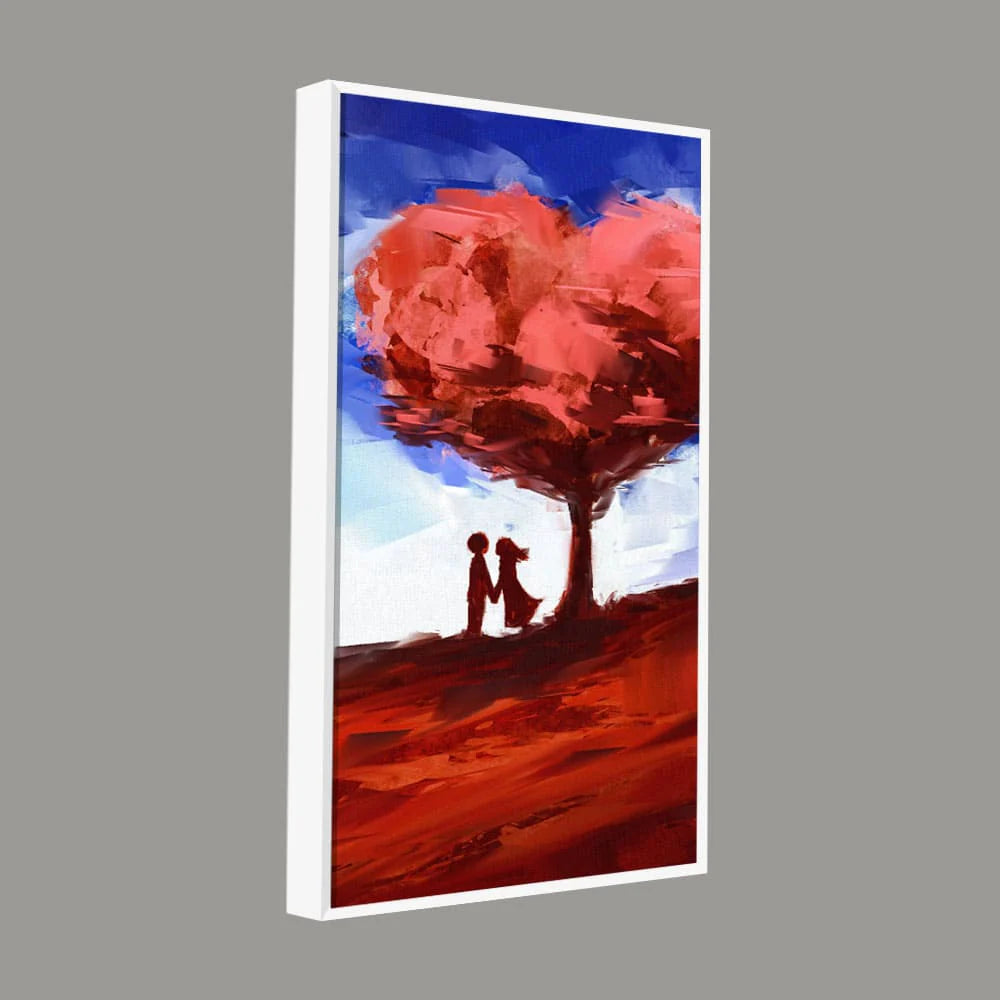 Red Love Heart Tree with Couple Premium Canvas Wall Painting