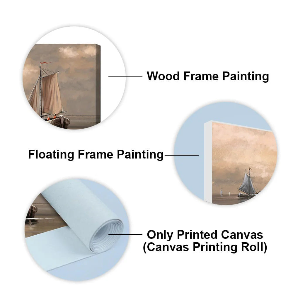 Sailing Boat on the Sea landscape with Fisherman Wall Painting