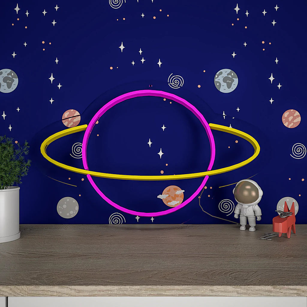 Solar System Saturn Plante Pink & Yellow LED Neon Light