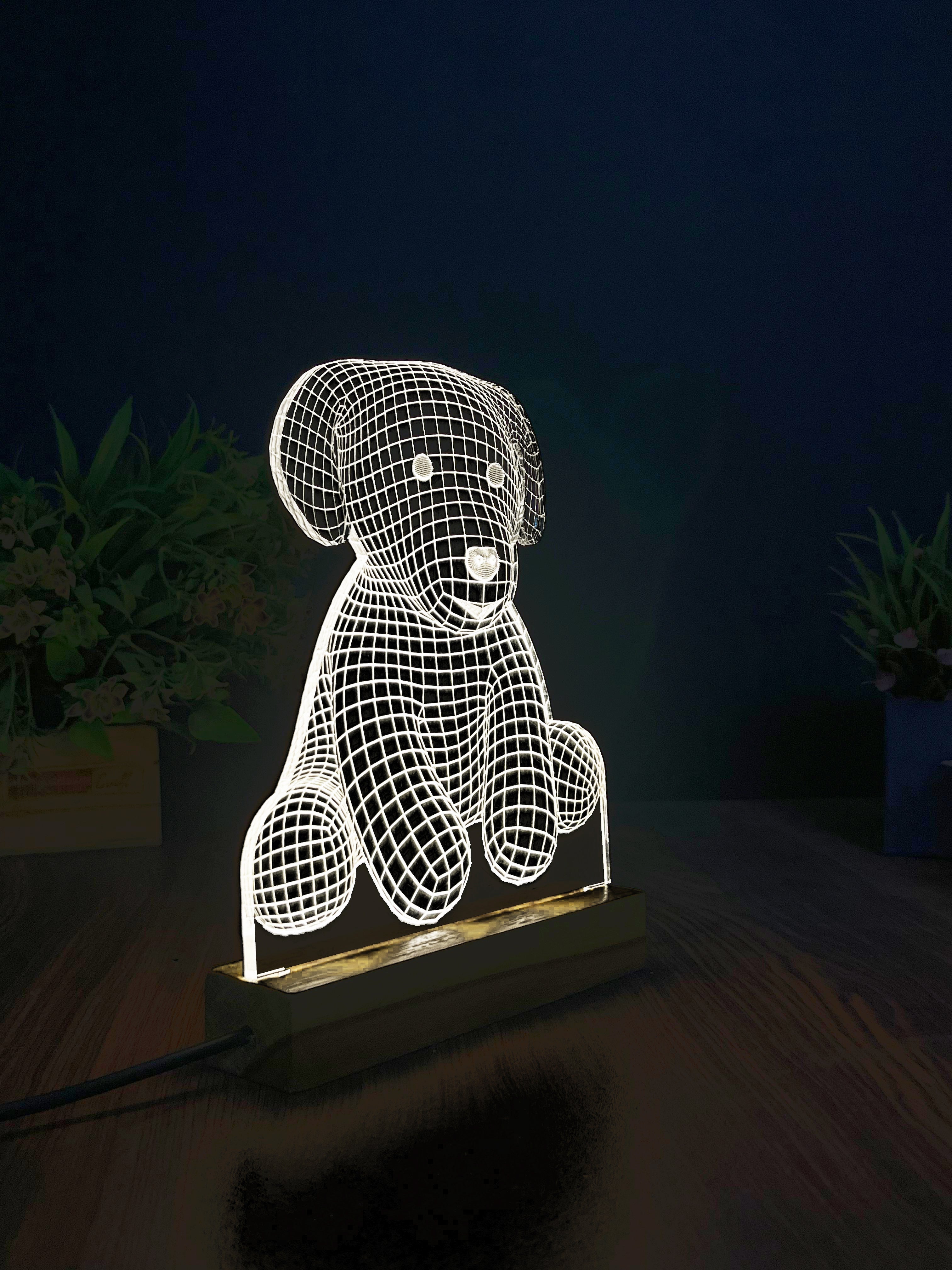 3D Illusion Puppy Night Lamp – Acrylic LED Light with Wooden Base