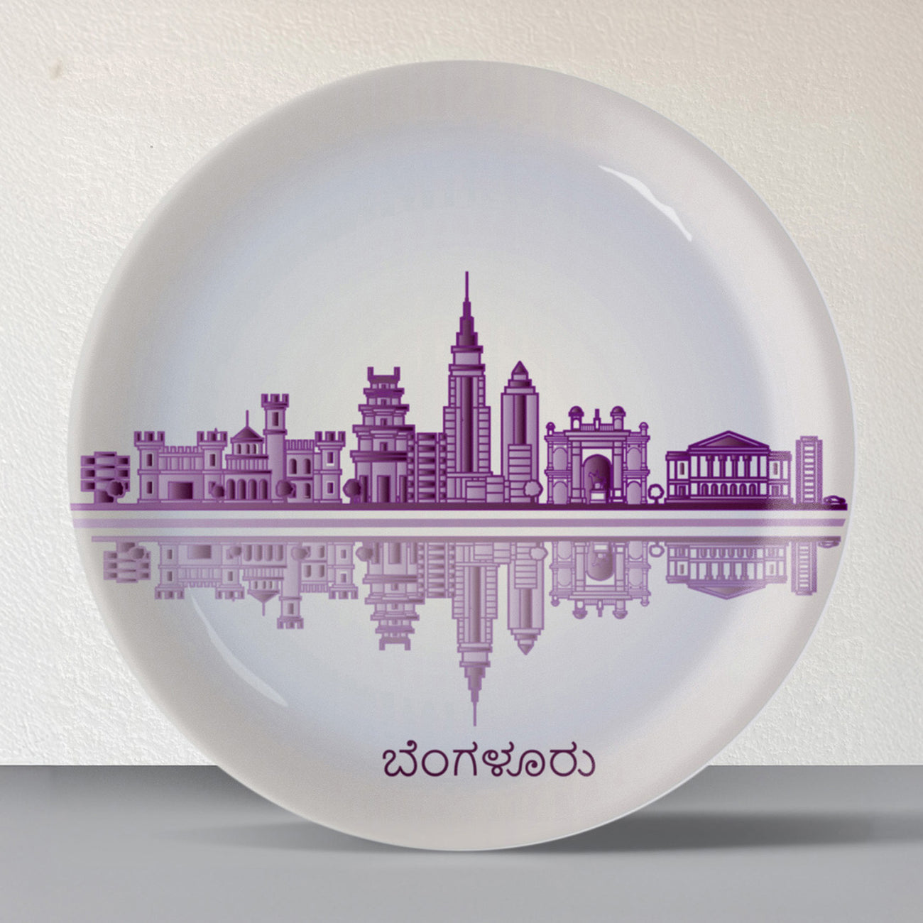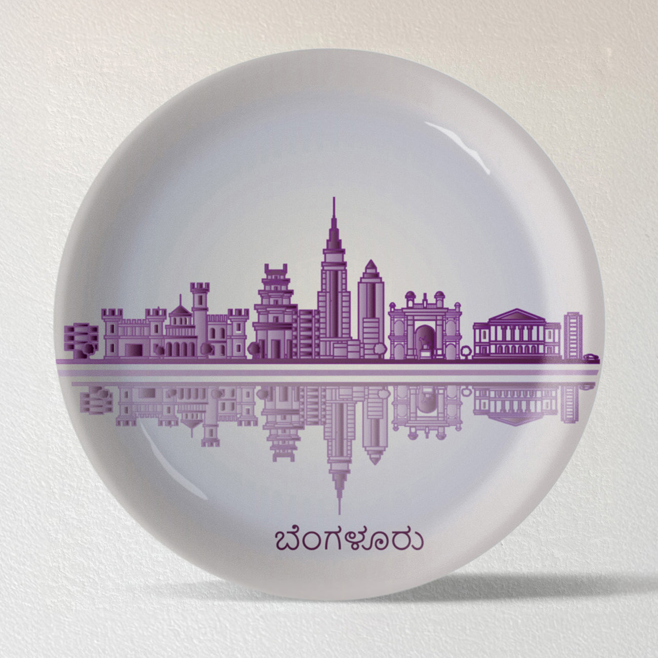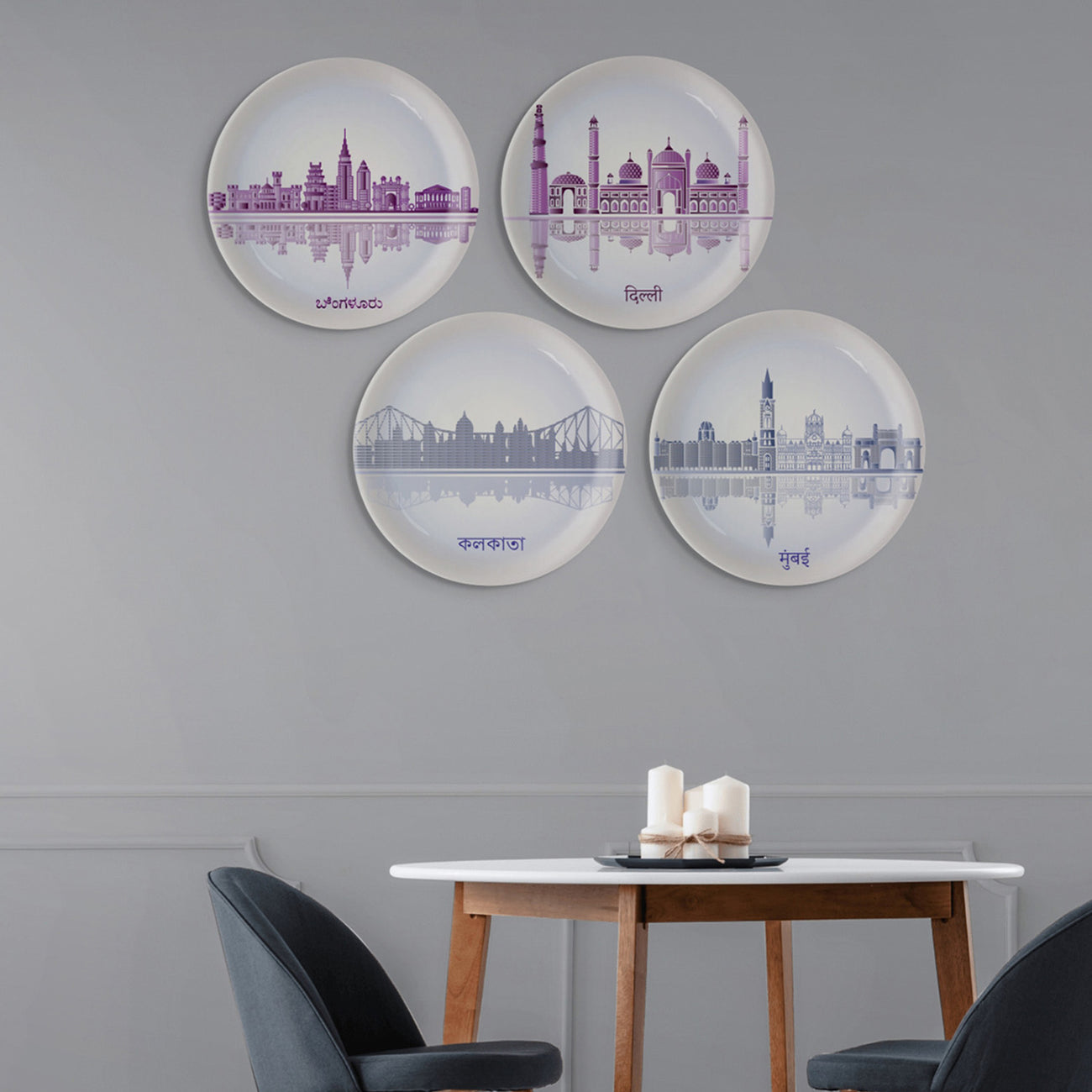 Urban Dreamscapes: Cityscape collage Artistry porcelain plate Set of 4